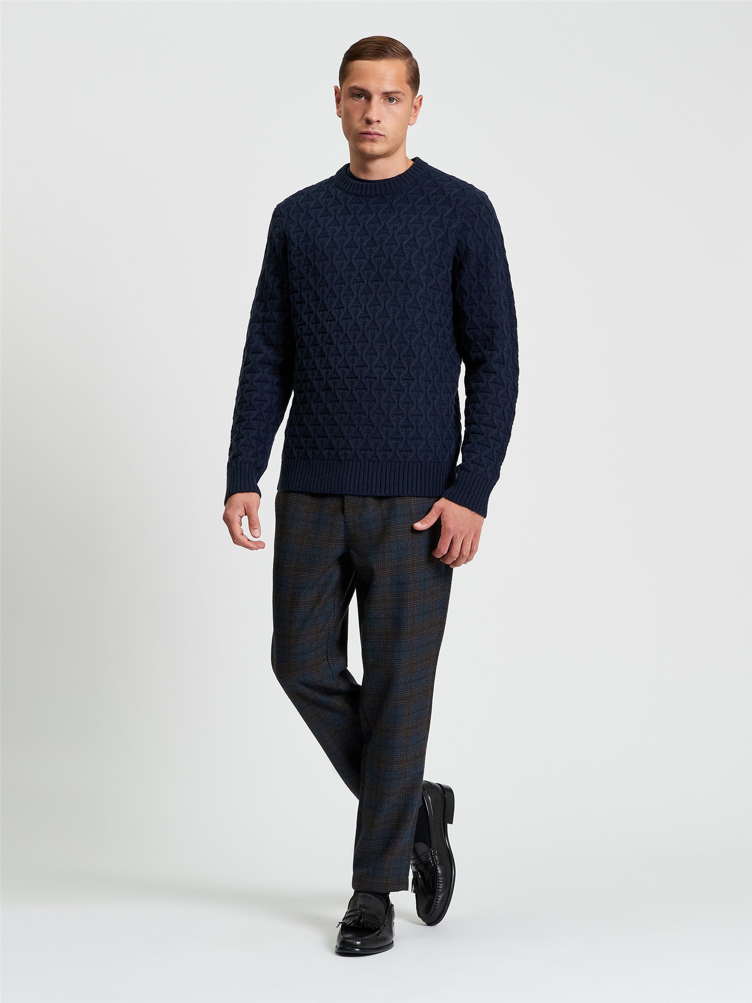 Made from a wool blend, this regular fit cable texture crew features a Ben Sherman branded woven label on the side seam.