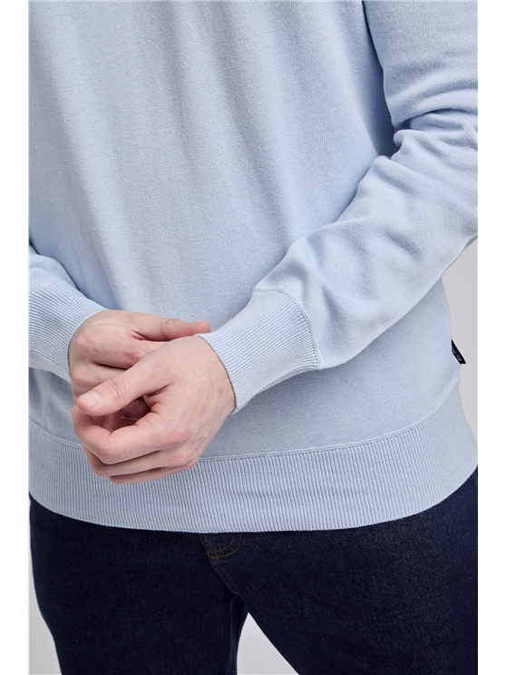 The perfect every day knit, crafted in soft cotton with a classic crew neck and our subtle tonal embroidered logo at the chest. Contrast knit panels at the shoulders set this wardrobe staple apart.