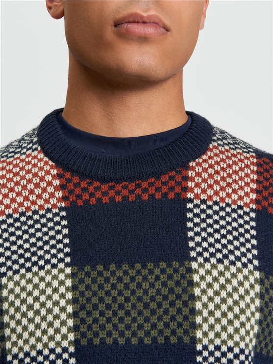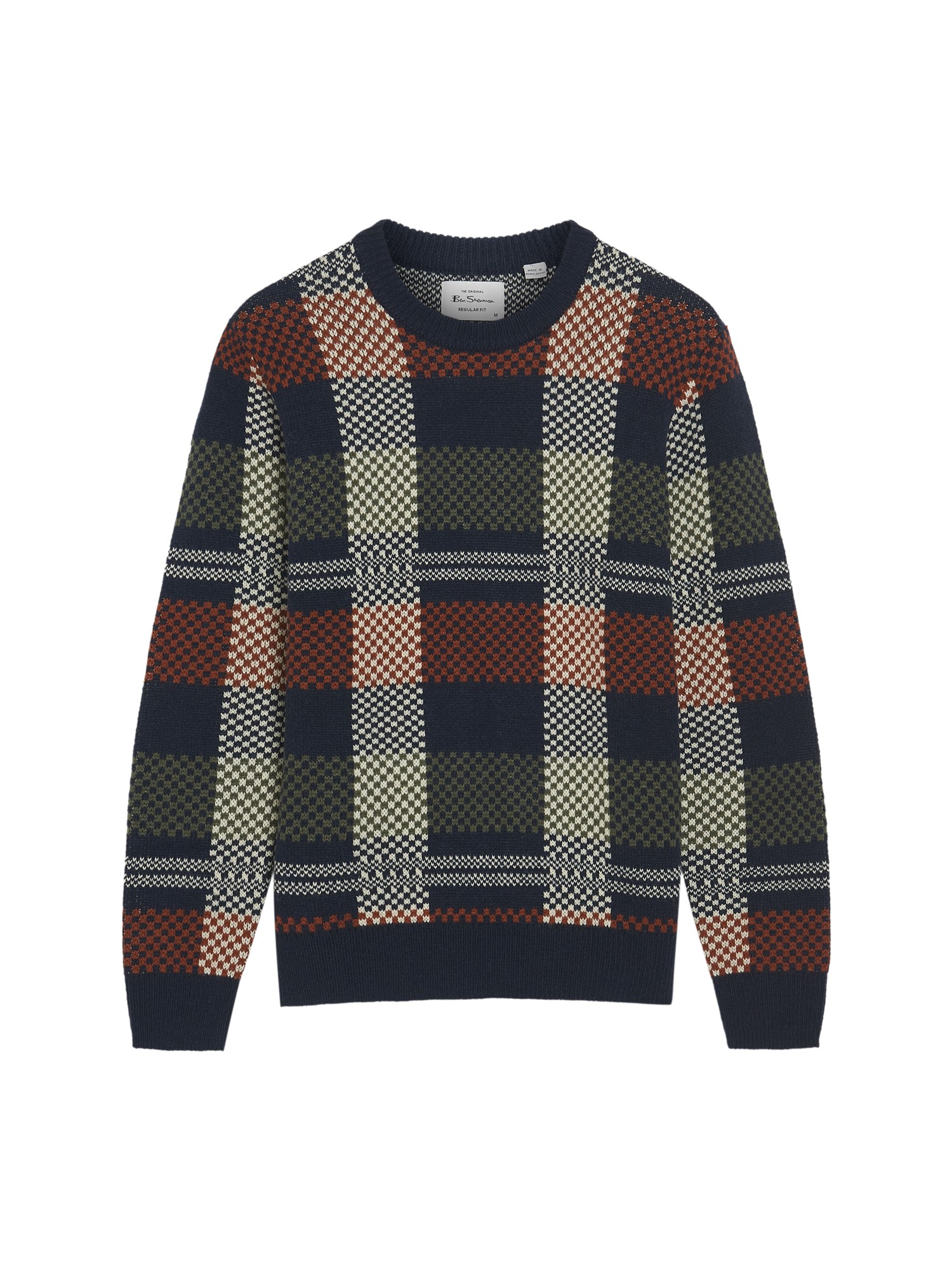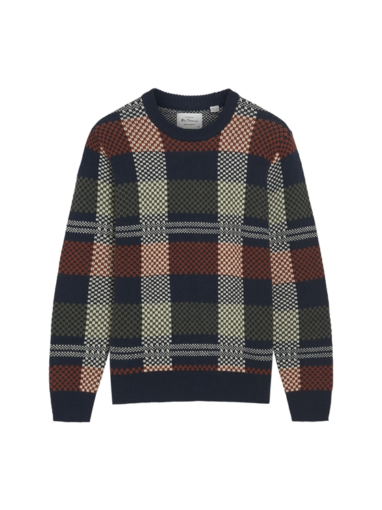 Made from a wool blend, this regular fit jacquard check crew features a Ben Sherman branded woven label on the side seam.