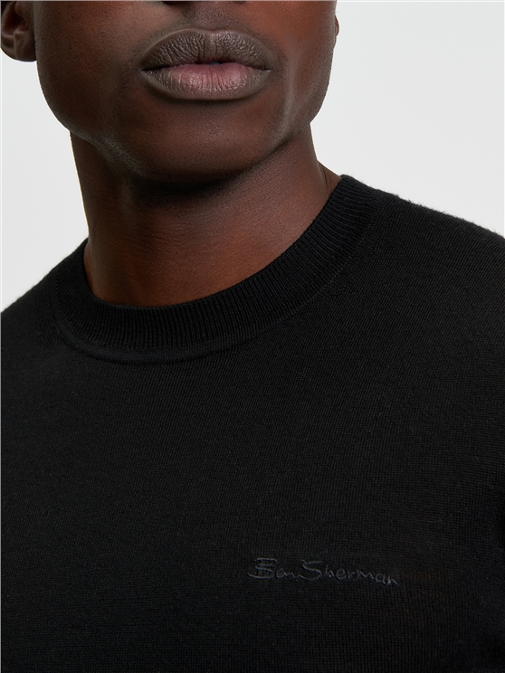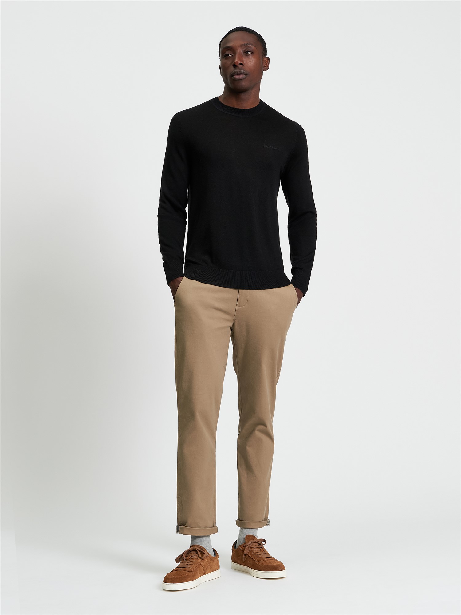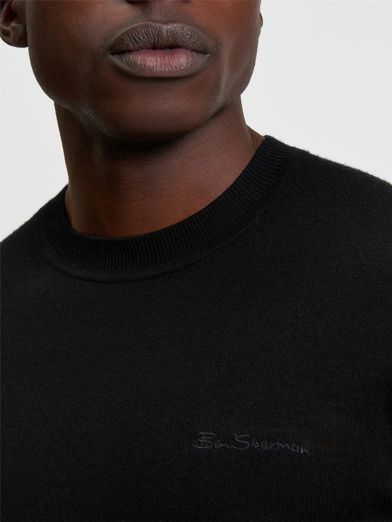 Made from 100% merino wool, this long sleeve knitted crew neck features contrast tipping and a Ben Sherman embroidery on the left chest. A regular fit.