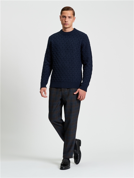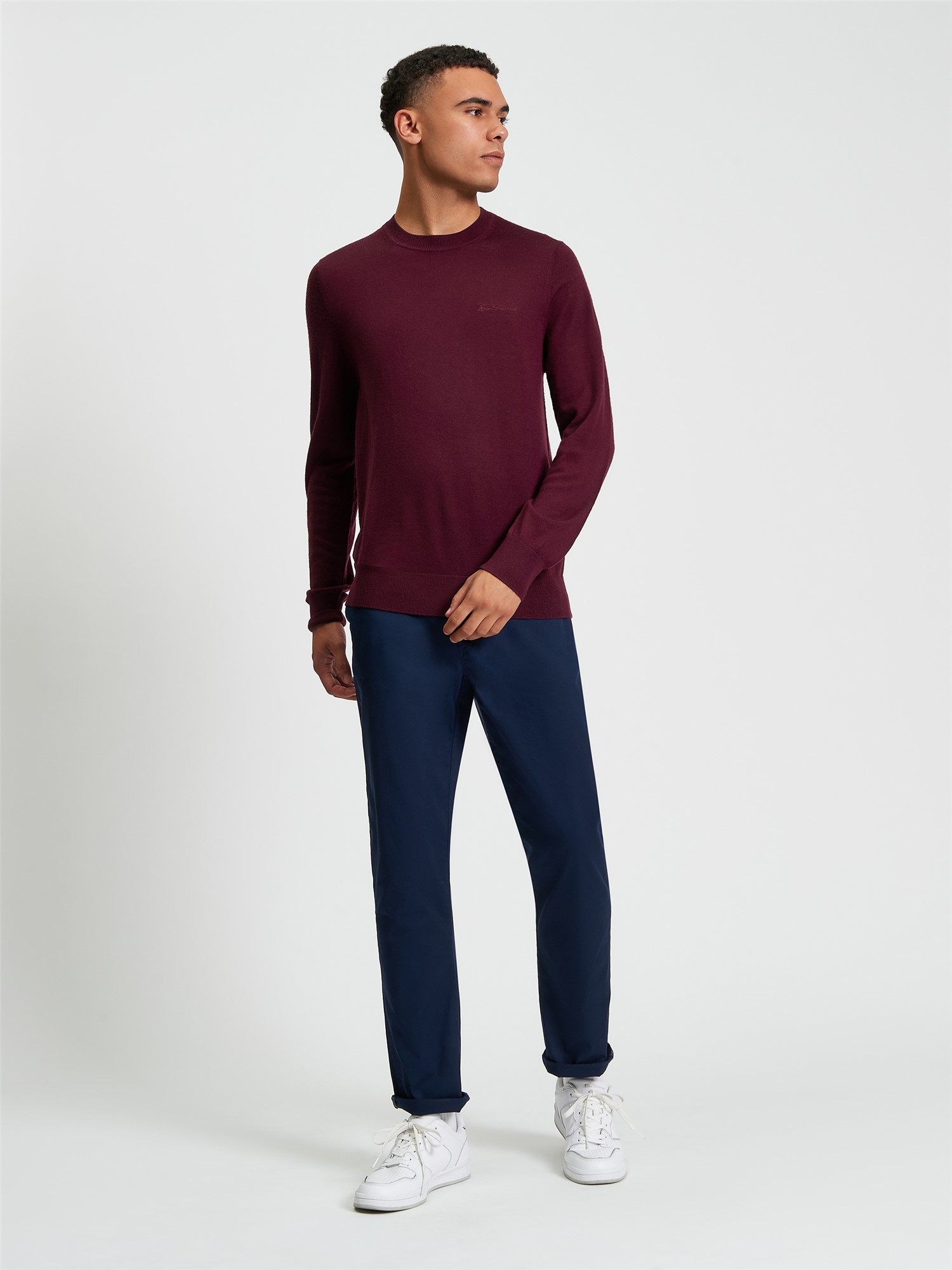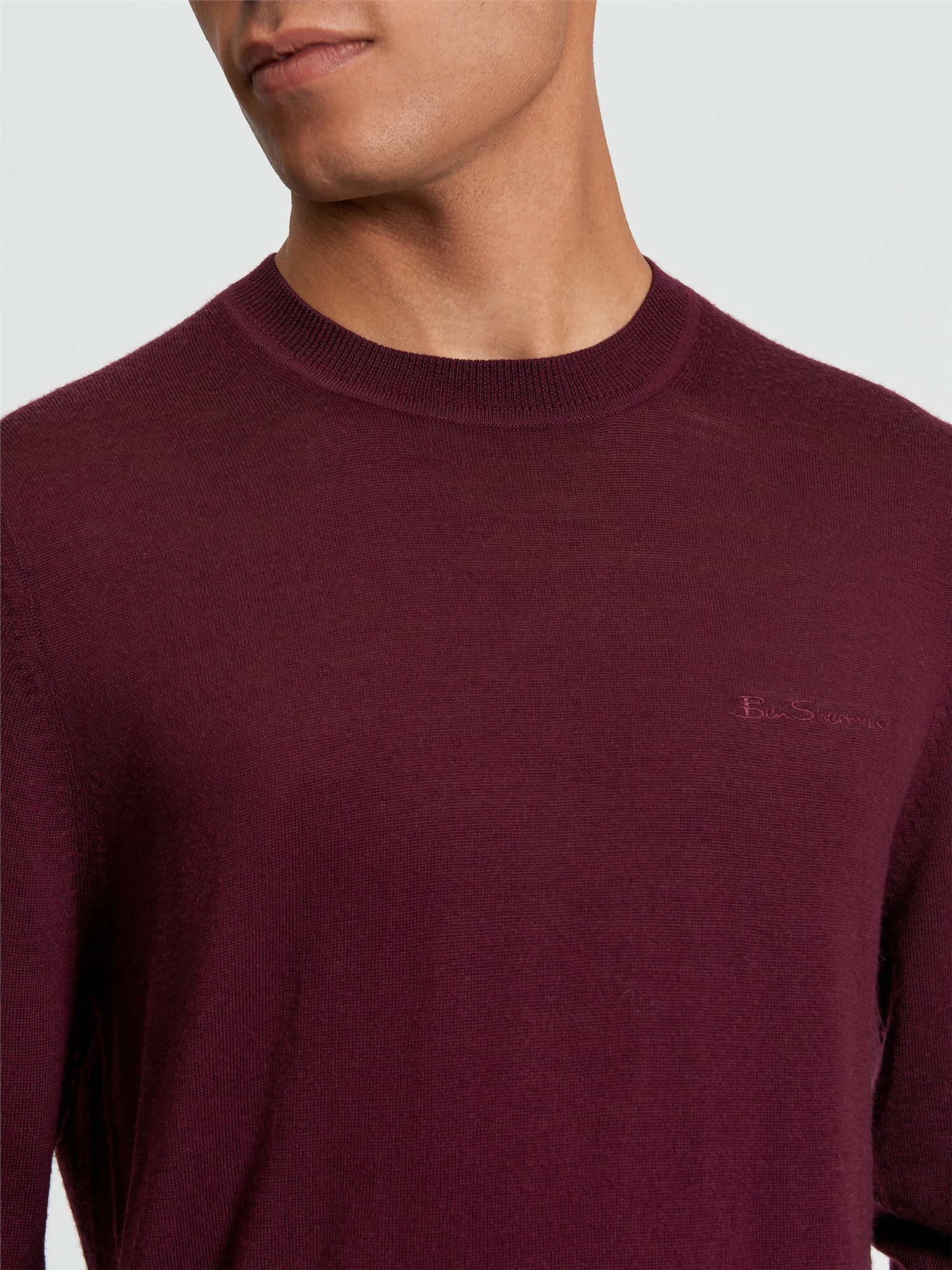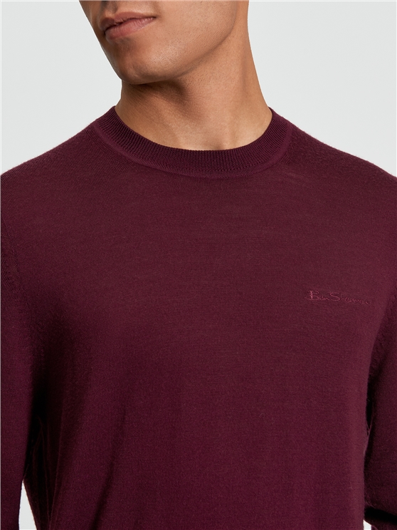 Made from 100% merino wool, this long sleeve knitted crew neck features contrast tipping and a Ben Sherman embroidery on the left chest. A regular fit.