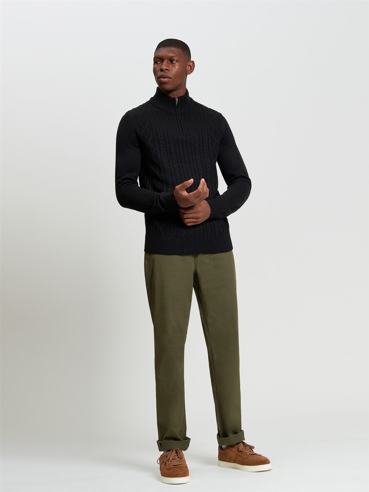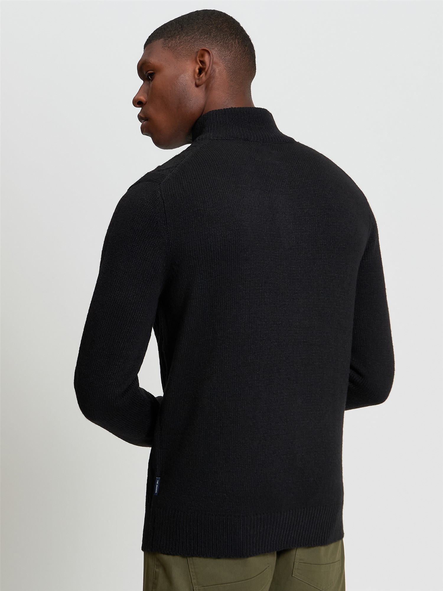Made from a wool blend, this regular fit 1/4 zip funnel neck features a mixed cable design with rib collar and cuffs. It is completed with a Ben Sherman branded woven label on the side seam.