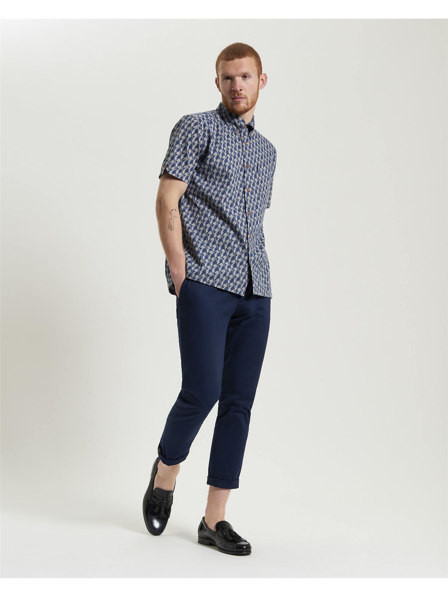A classic fit shirt designed with a block left print. Featuring a straight hem, three finger button down collar and a 'Ben Sherman' branded woven label at the chest pocket. Made from 100% cotton.