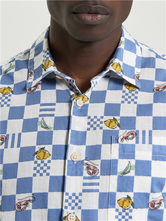 A classic fit shirt designed with a chequerboard print. Featuring a straight hem, casual point collar and a ‘B’ branded woven label at the chest pocket. Made from 100% cotton.