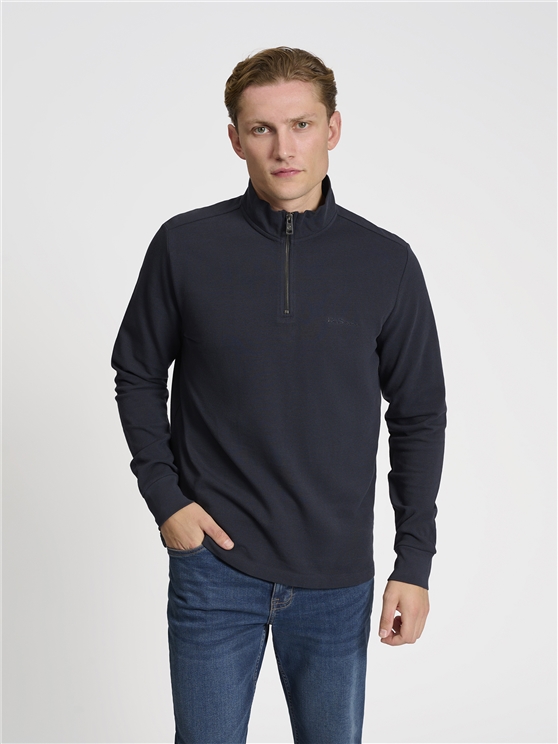 Ben Sherman cotton pique funnel neck sweat.Featuring a zip neck opening with a metal target puller and rib cuffs. This layering piece is perfect to keep out the chill on cooler days. Finished with our subtle logo embroidery at the chest.