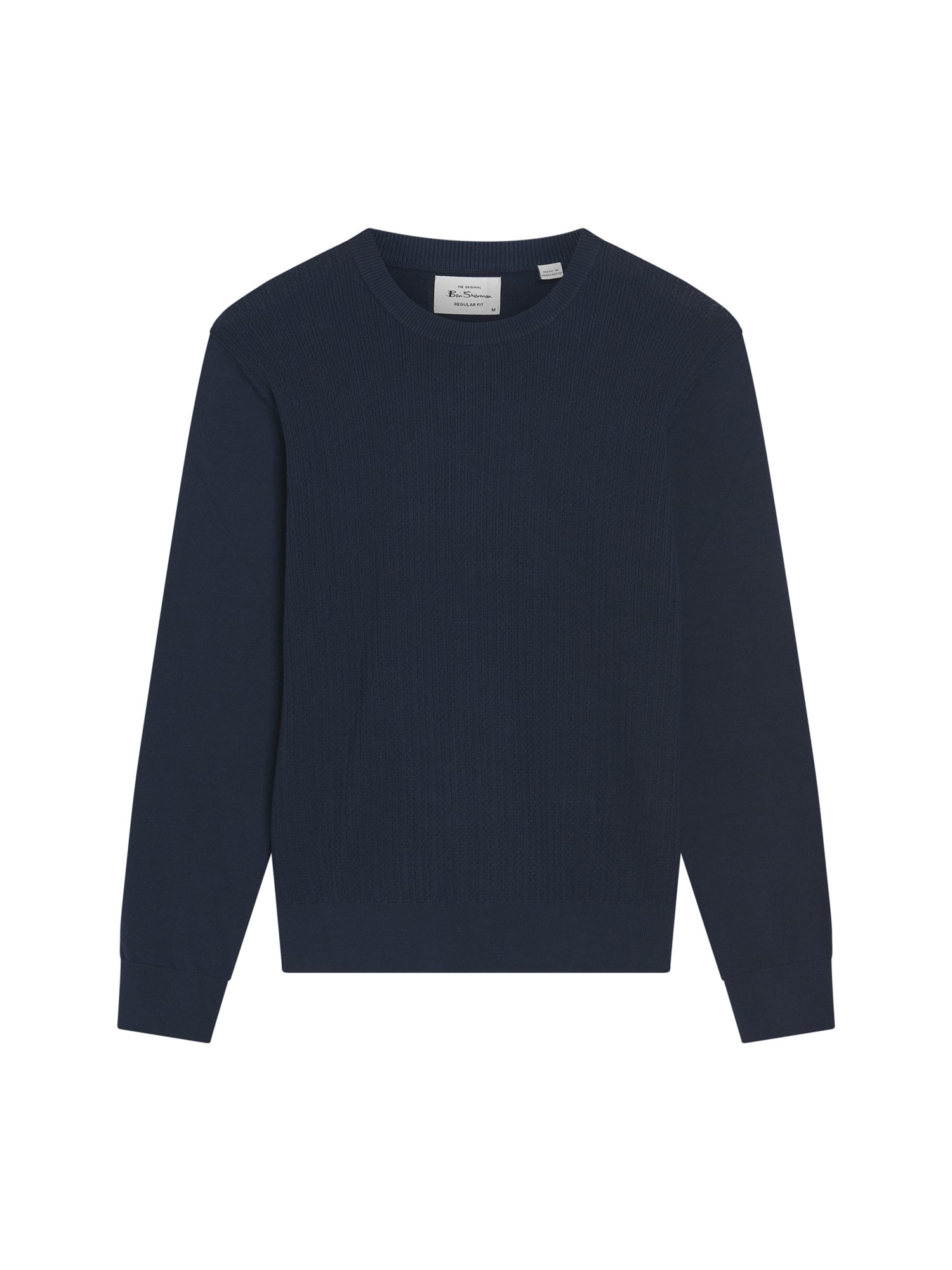 Made from 100% cotton, this regular fit knitted crew features a textured front and a Ben Sherman branded woven label on the side seam