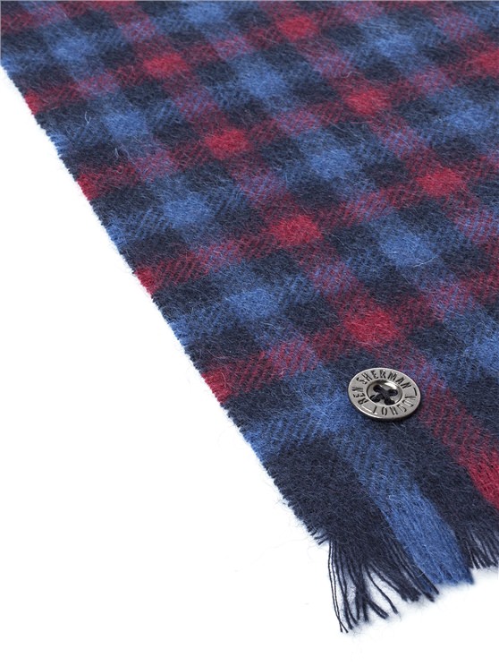 A classic house gingham design men's scarf by Ben Sherman - the perfect mod style addition to any wardrobe in a deep blue and red colour scheme.