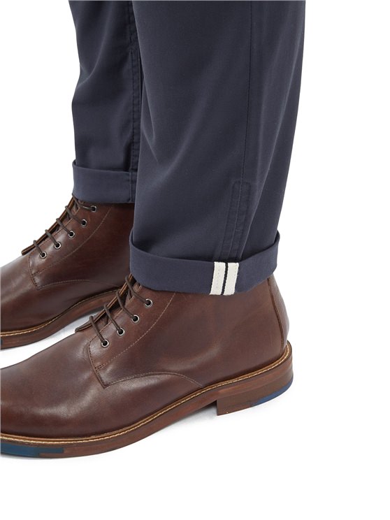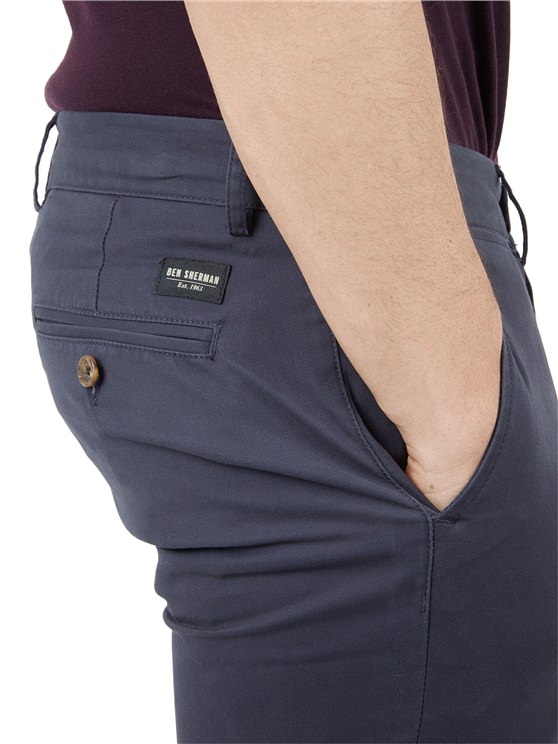 Take your casual wardrobe to the next level with our slim stretch chino. With a clean silhouette and formal inner construct these trousers feature a front coin pocket, concealed zip fly and a herringbone part- lining. Also includes two welted back pockets; one featuring Ben Sherman branded label and button- fastening.