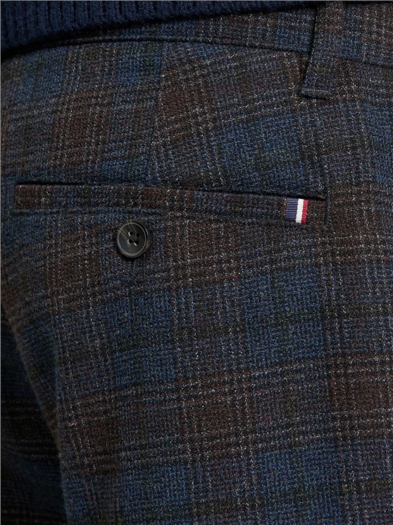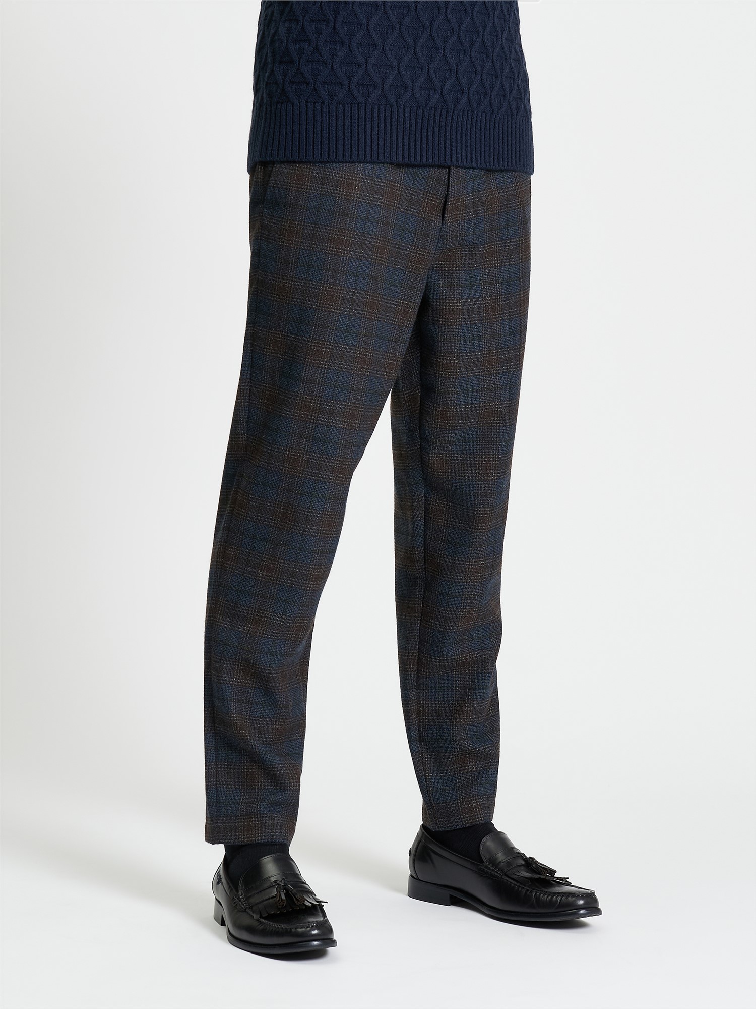 This Check Trouser is made from a polyester viscose blend. Features four external pockets, mod tape branding on the back welt pocket and internal waist band.
