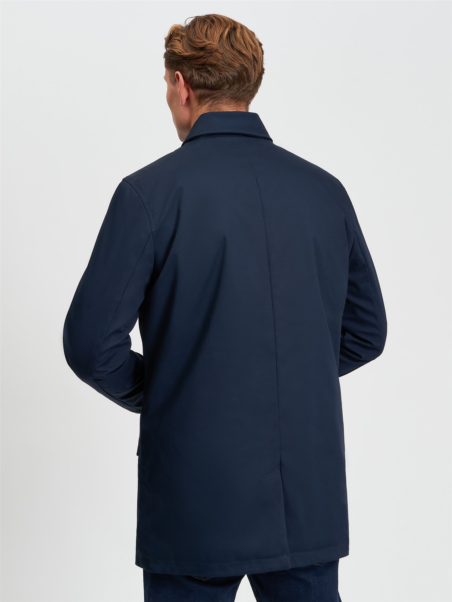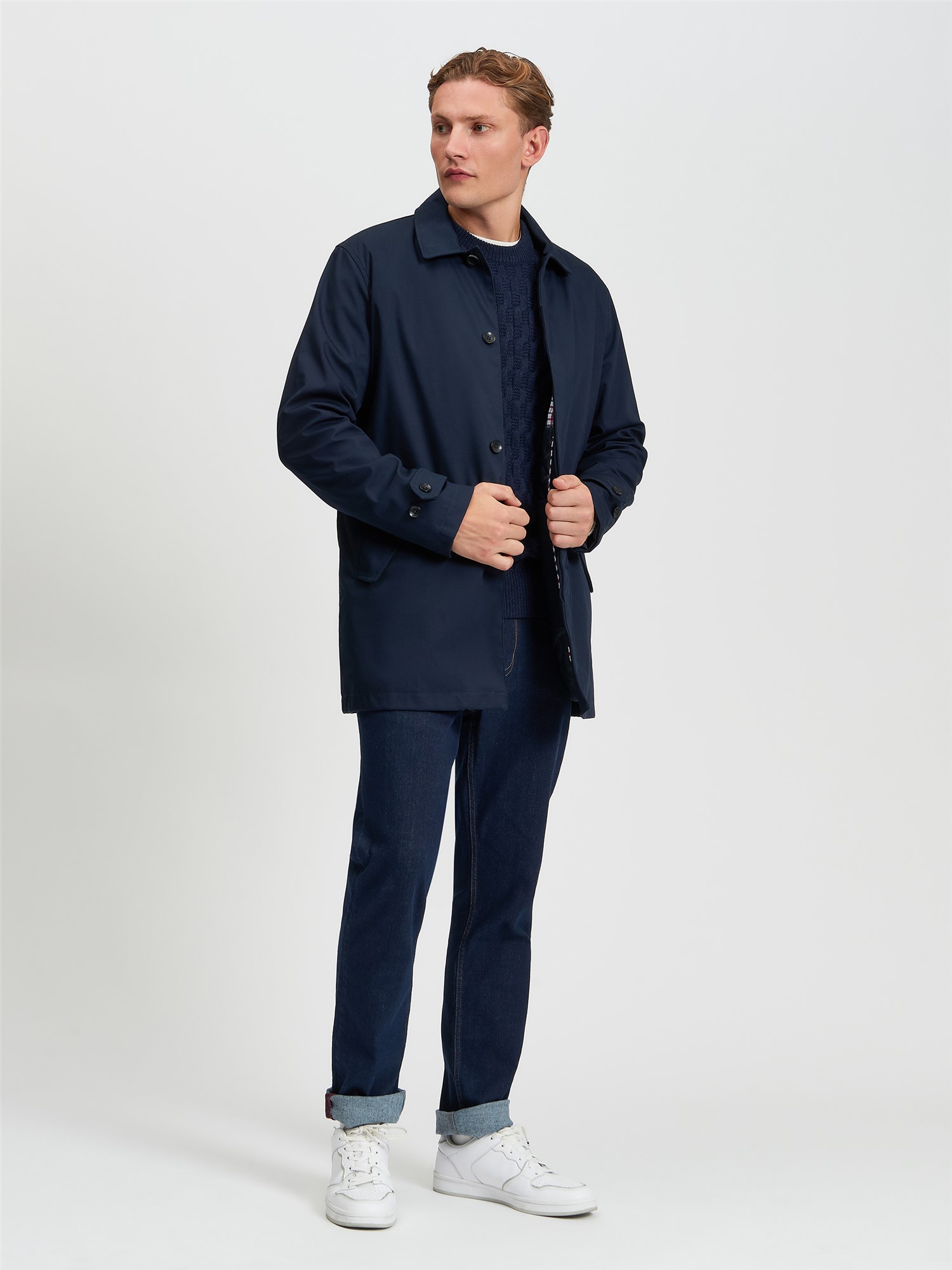 The Ben Sherman bonded mac crafted in 100% cotton, featuring a concealed button placket, flap pockets and storm straps on cuffs. This style has our iconic house check lining and a branded Ben Sherman woven label on the pocket.