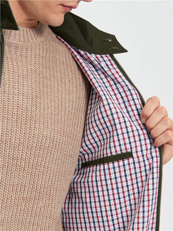 Our classic Ben Sherman Harrington. 100% Cotton, featuring our iconfic House Check half lining and umbrella yoke, with rib cuffs and elasticated hem