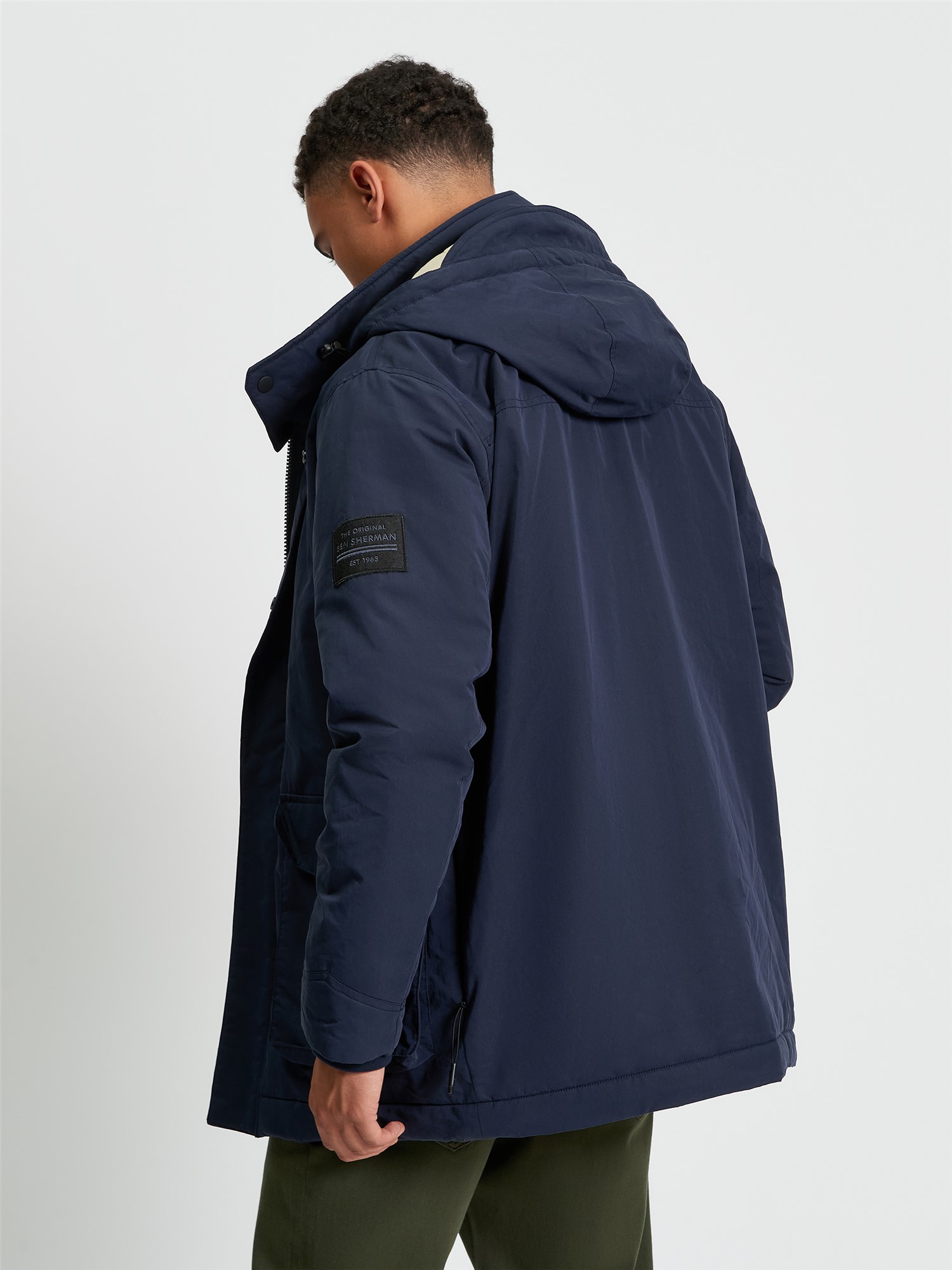 This Heavy Parker is made from a cotton blend. Featuring internal and external pockets, quilted internal hood and a Ben Sherman branded badge on the left sleeve.