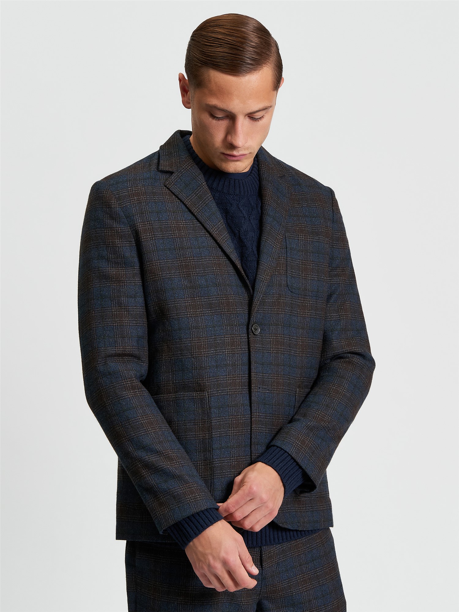 Made from a polyester viscose blend, this Check Blazer features three external pockets and a button fastening. Completed with a central back vent, button cuffs and two internal welt pockets.
