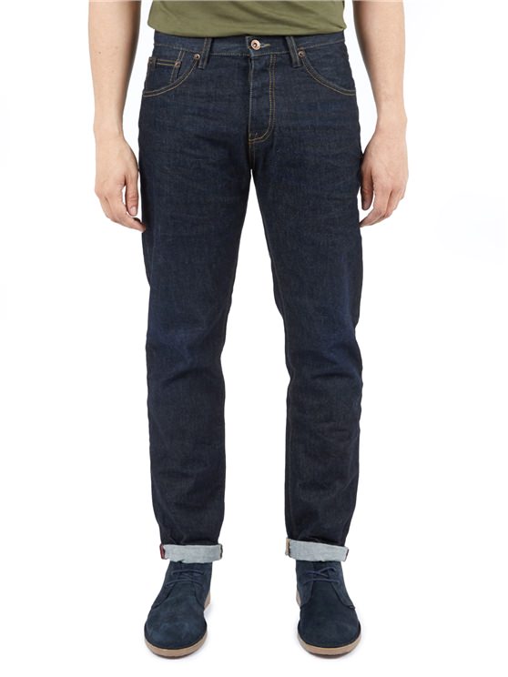 One of our slightly more worn looks, this denim jean combines perennial construction with signature Ben Sherman detailing. Deliberate crease work and its slim cut makes for a neat, worn silhouette, plus the hem can be turned up to show the colour-stitch element. A modern classic.