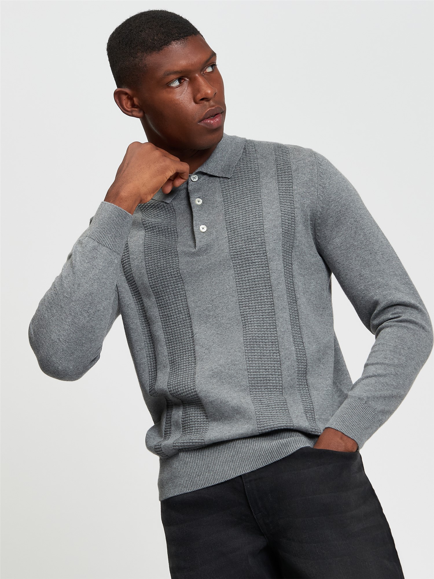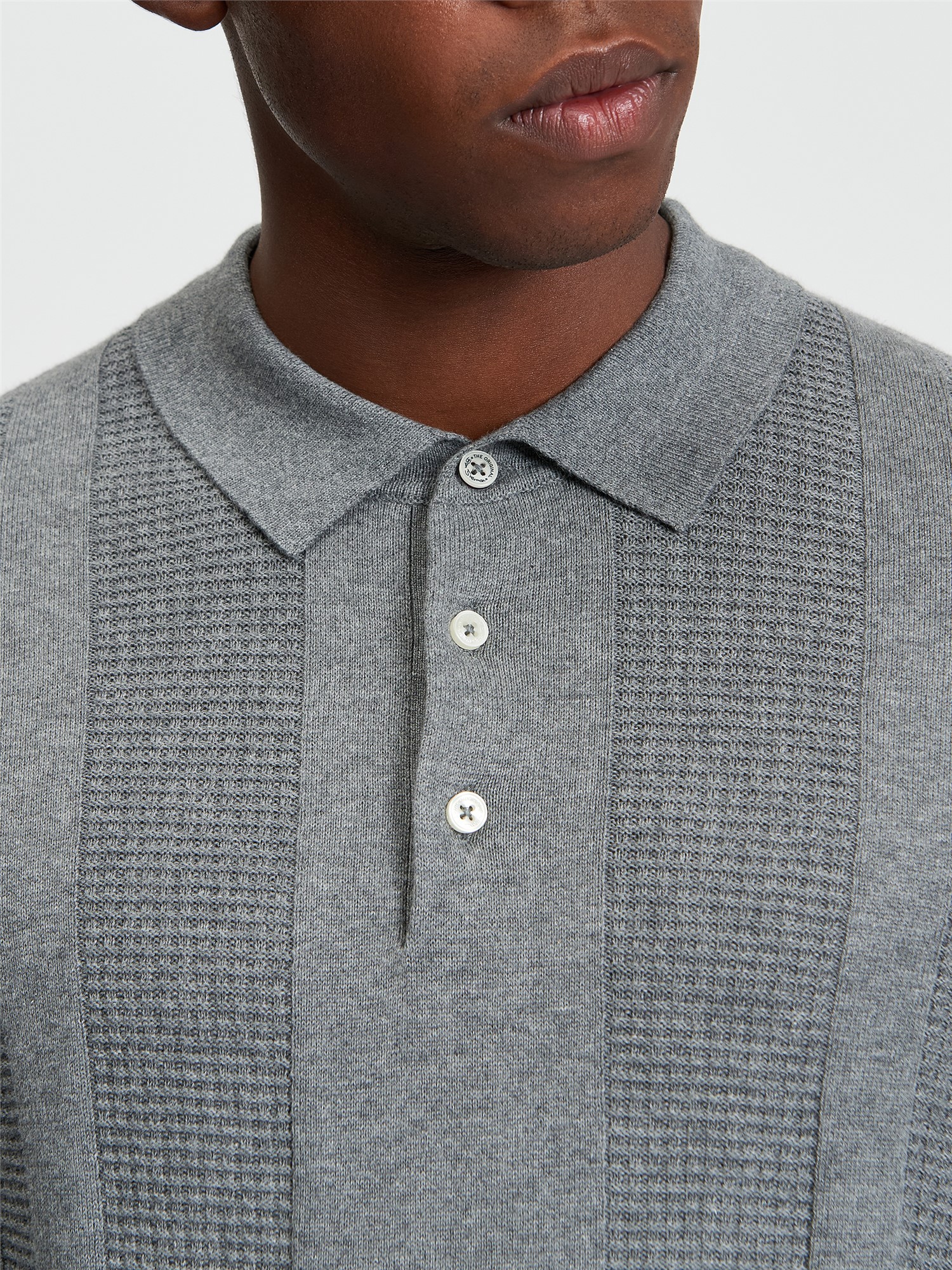 This long sleeve textured front knitted polo features a 3-button placket and Ben Sherman flag label on the sideseam. A regular fit, made from 100% cotton.