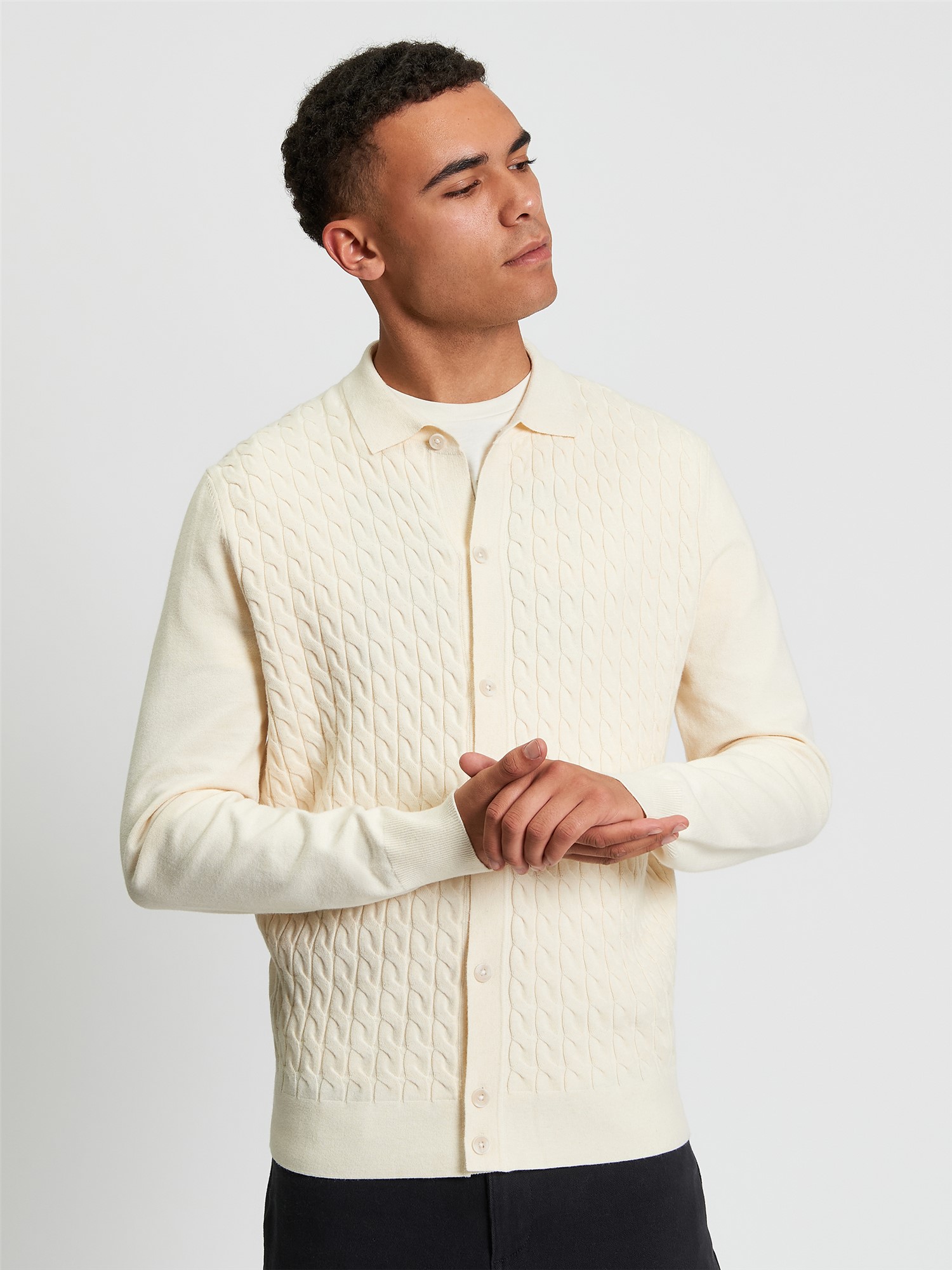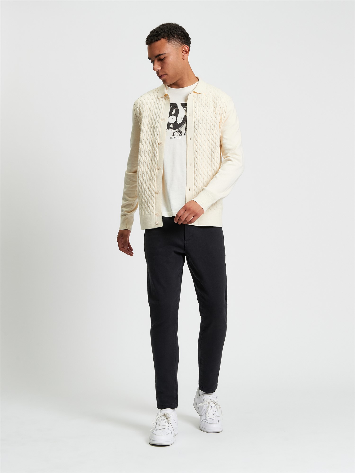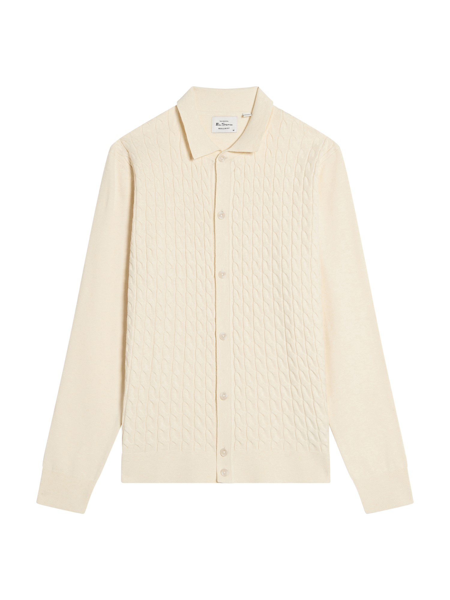 This long sleeve knitted button through cable polo feature a button fastening and a Ben Sherman branded woven label on the side seam. A regular fit.