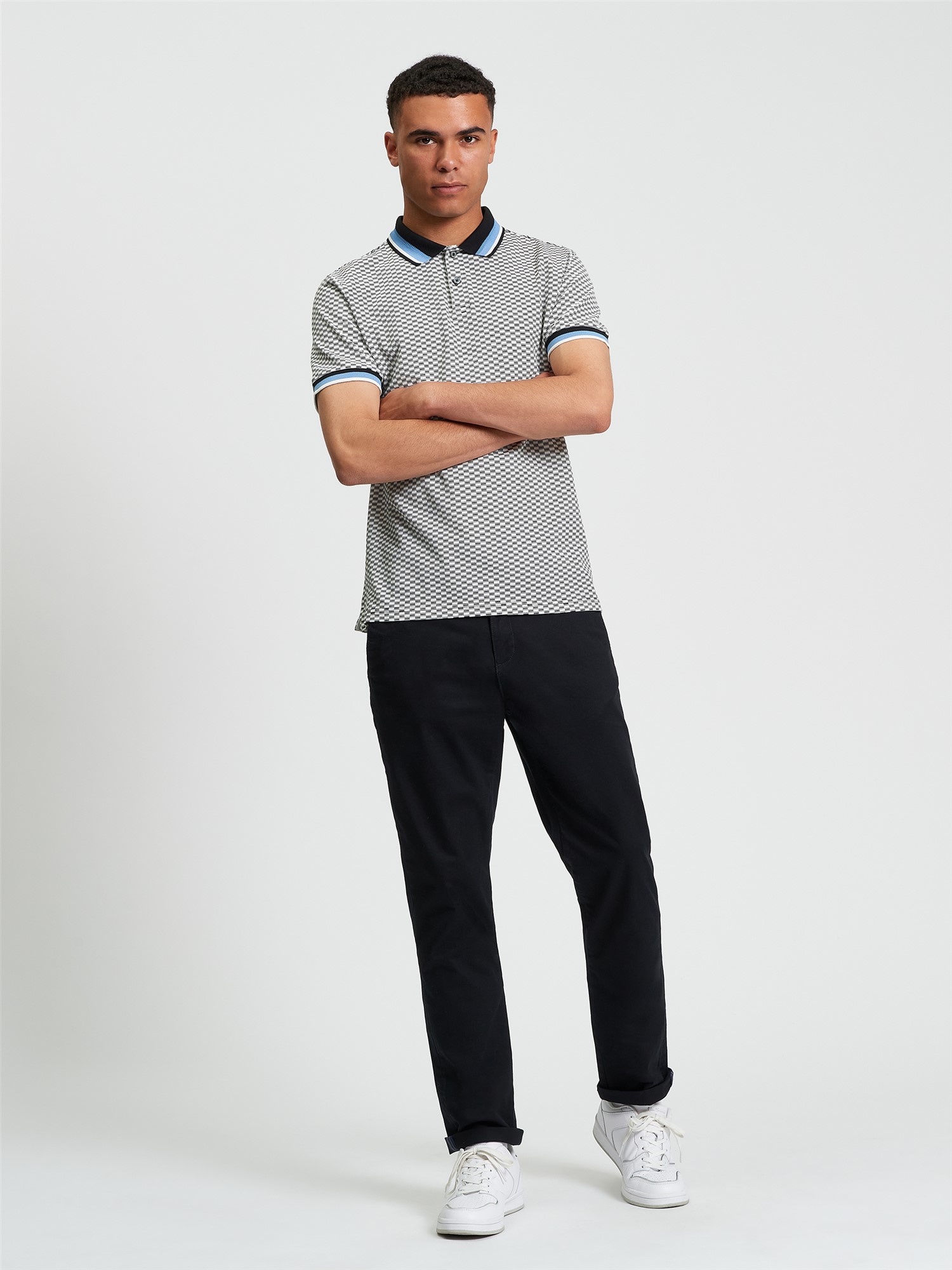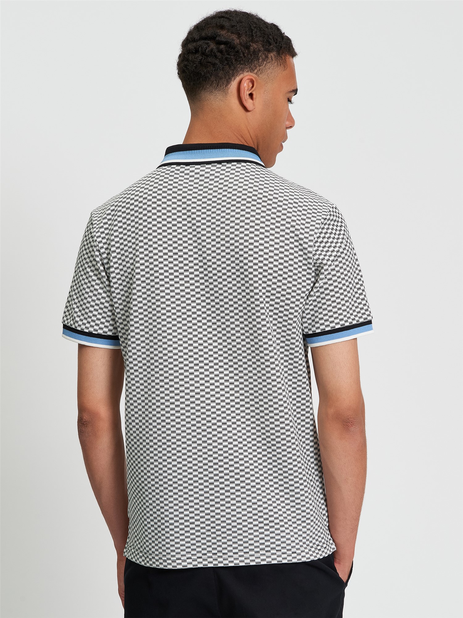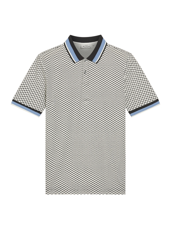 Made from 100% cotton, this short sleeve pique polo features an all over printed chequerboard design, contrast tipping and a two button placket. A regular fit, completed with a Ben Sherman branded woven label on the side seam.