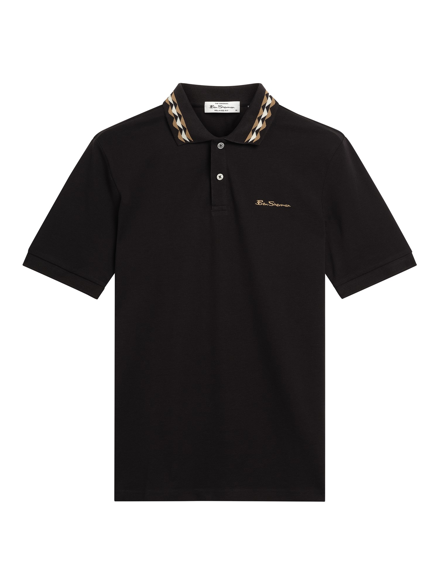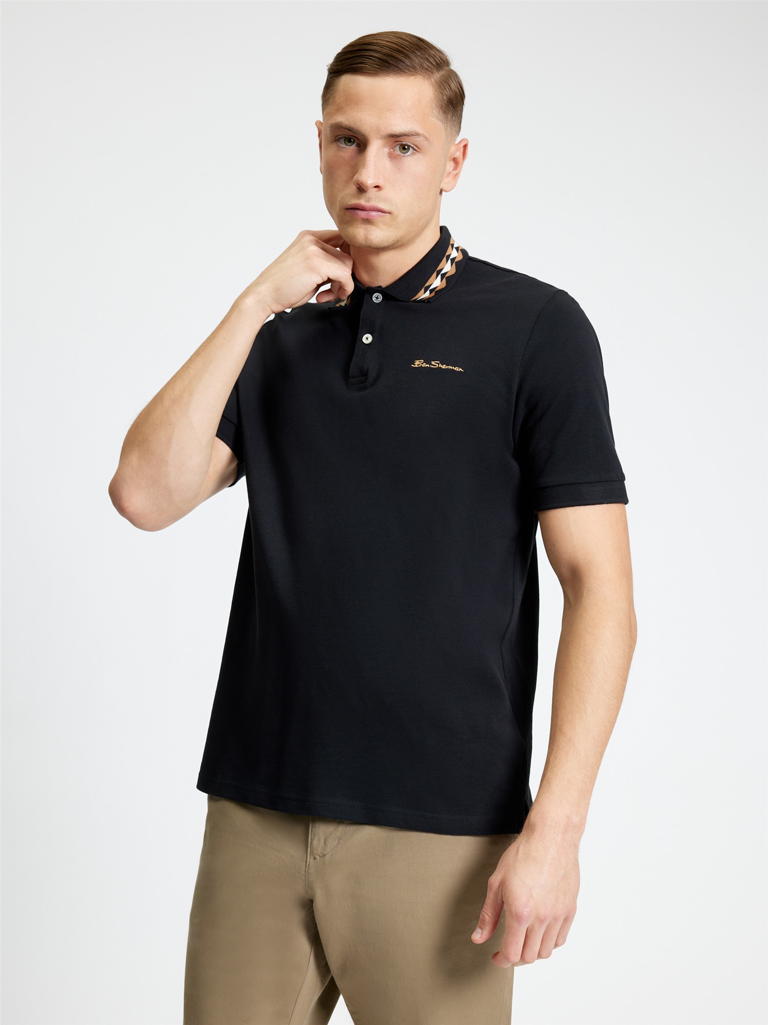 This short sleeve pique polo features a patterned collar and a contrast Ben Sherman embroidery on the left chest. A regular fit, made from 100% cotton.