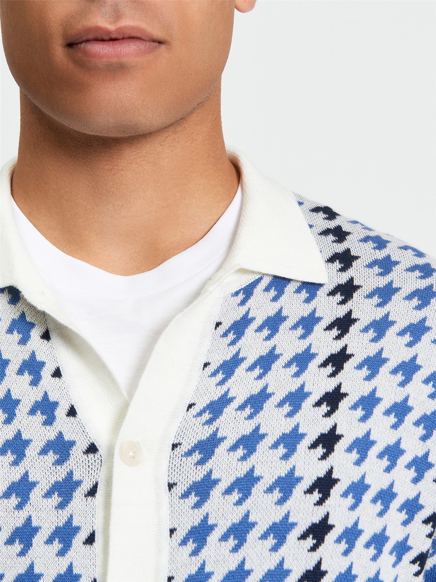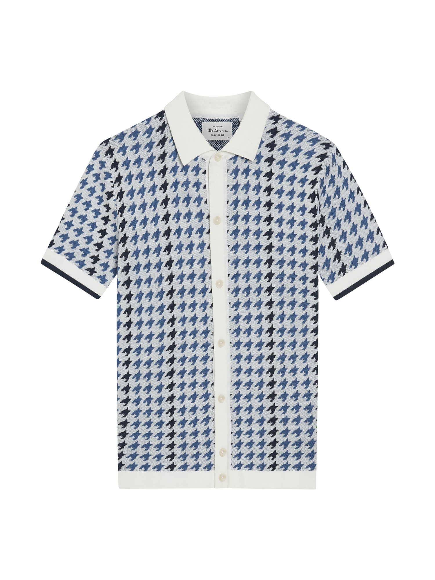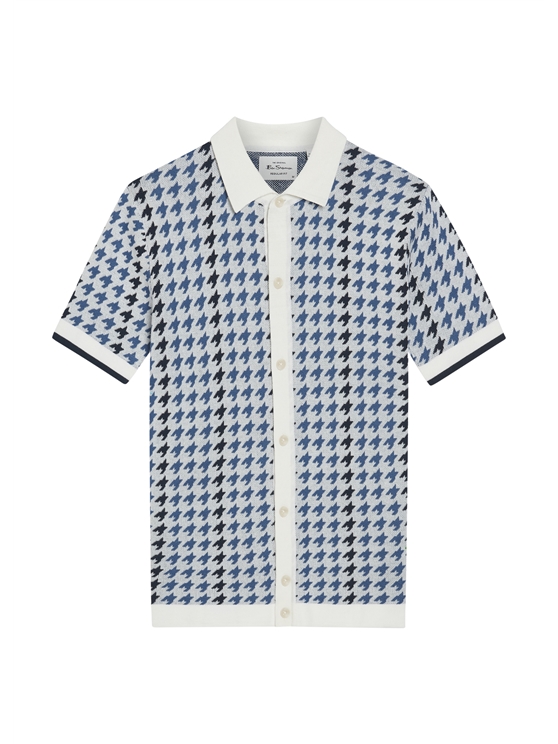Made from 100% cotton, this regular fit button through knitted polo features an all over houndstooth pattern and a Ben Sherman branded woven label on the side seam.