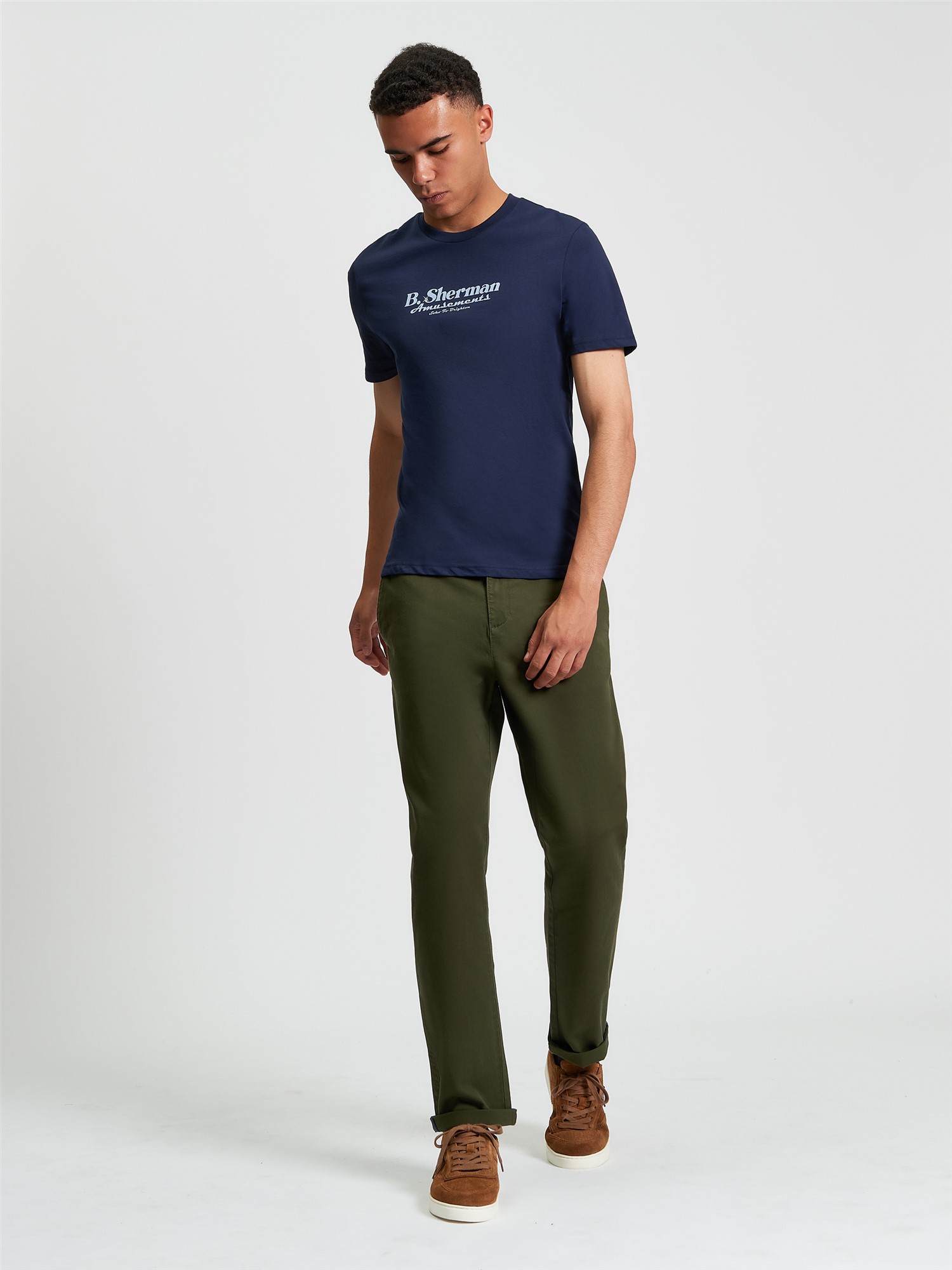 This short sleeve t-shirt includes a vibrant pinball inspired graphic print on the back and a Ben Sherman printed text on the centre chest. Made from 100% organic cotton, featuring a Ben Sherman branded woven label on the side seam.