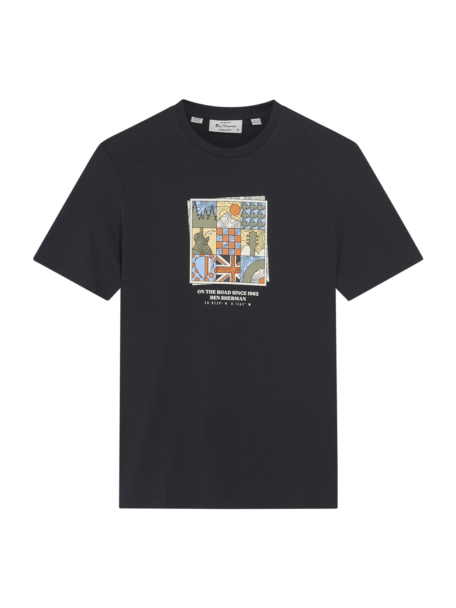 Made from 100% organic cotton, this short sleeve t-shirt features a collage of Ben Sherman graphics, with highlights of a high build print. A regular fit tee, completed with a Ben Sherman branded woven label on the side seam.