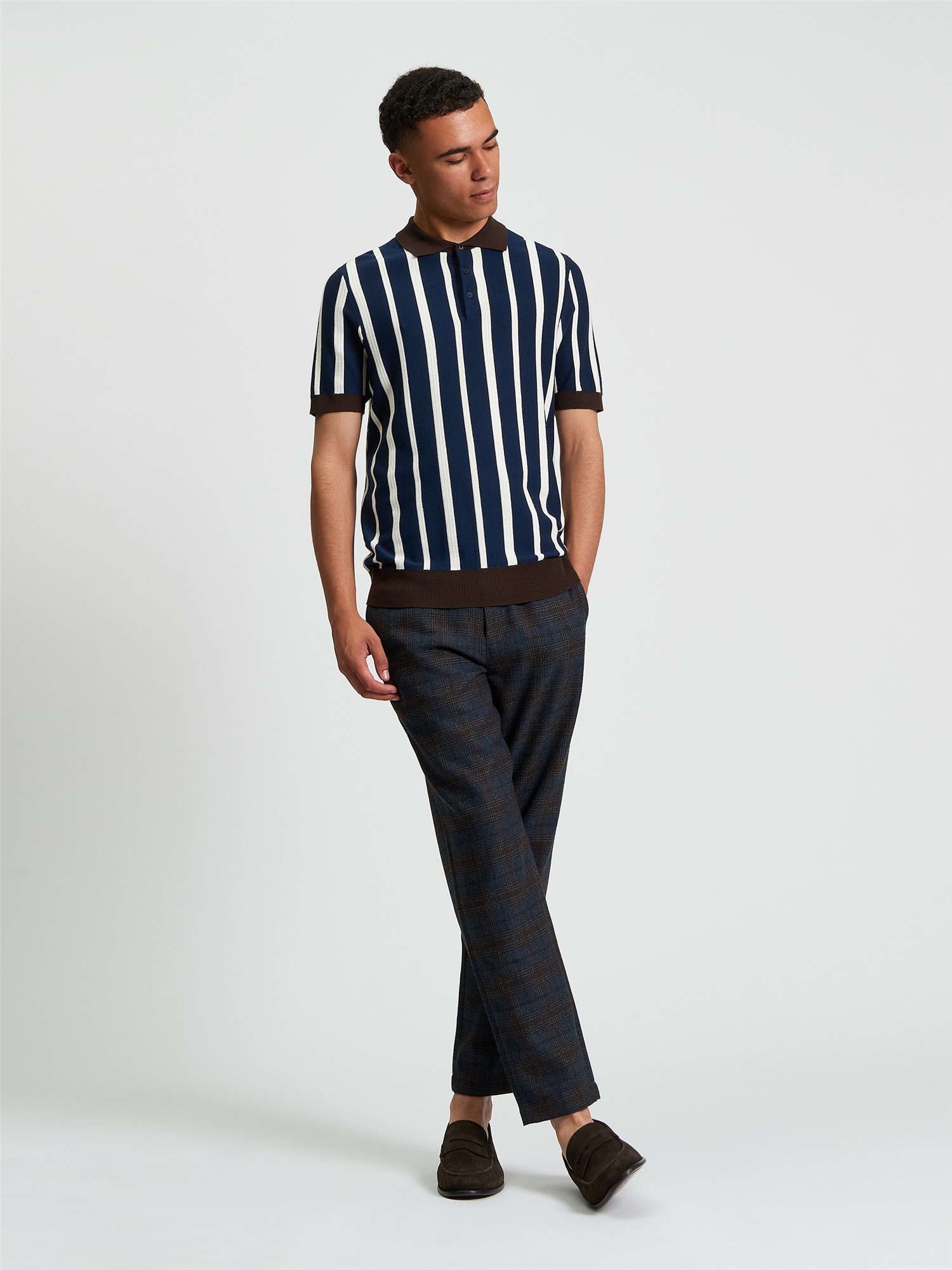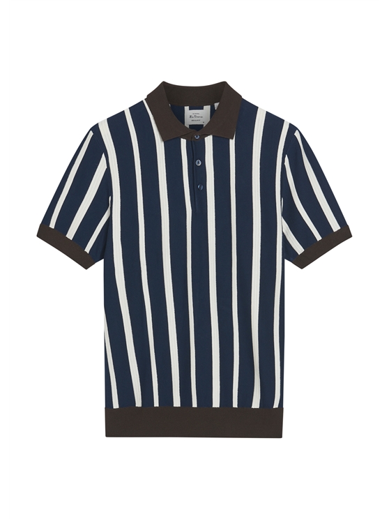 This short sleeve knitted raised stripe polo features contrast tipping and a Ben Sherman branded woven label on the side seam. A regular fit.