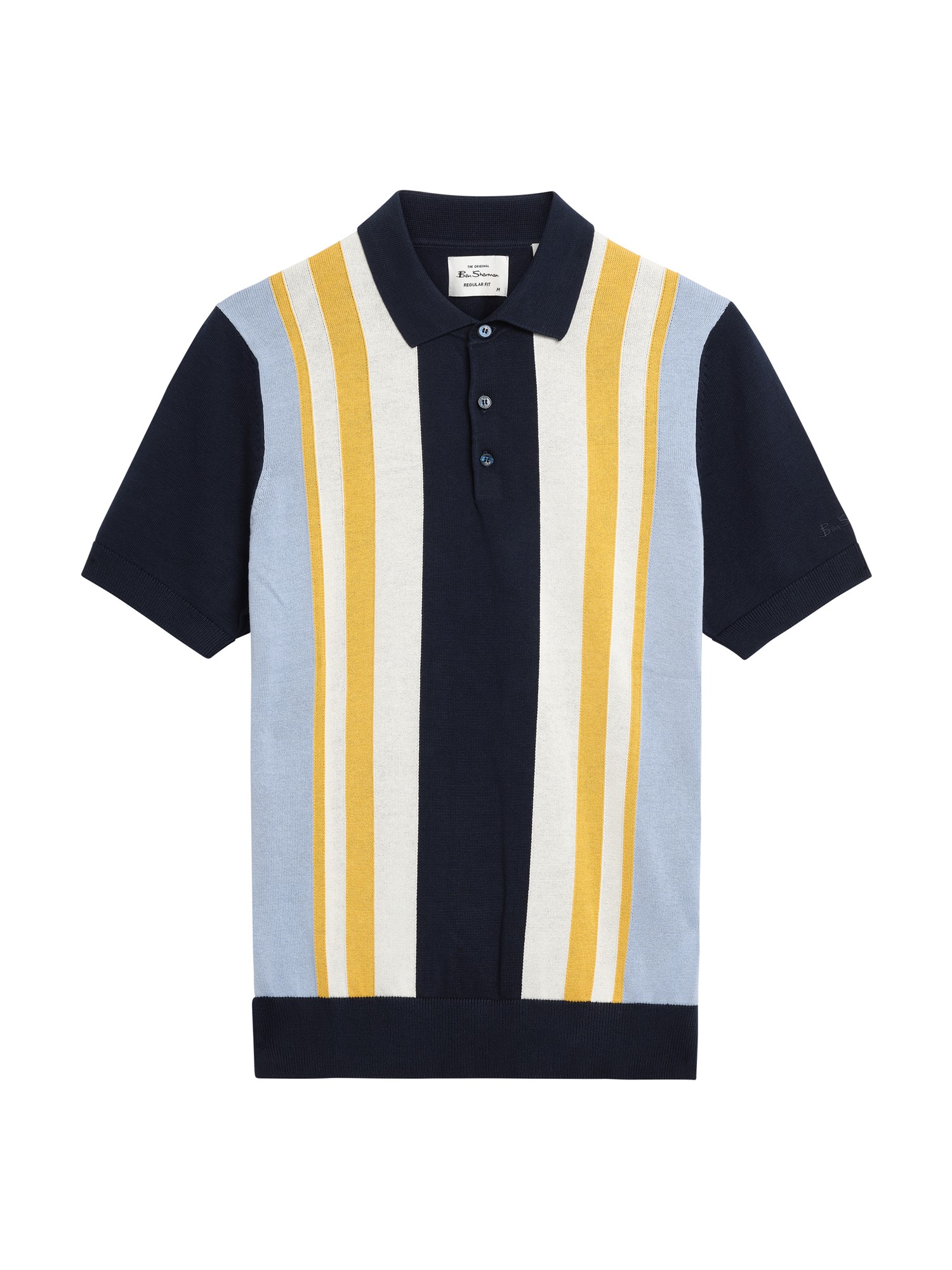 This short sleeve vertical stripe knitted polo features a 3-button placket and a ‘Ben Sherman’ embroidery on the left sleeve. A regular fit, made from 100% cotton.