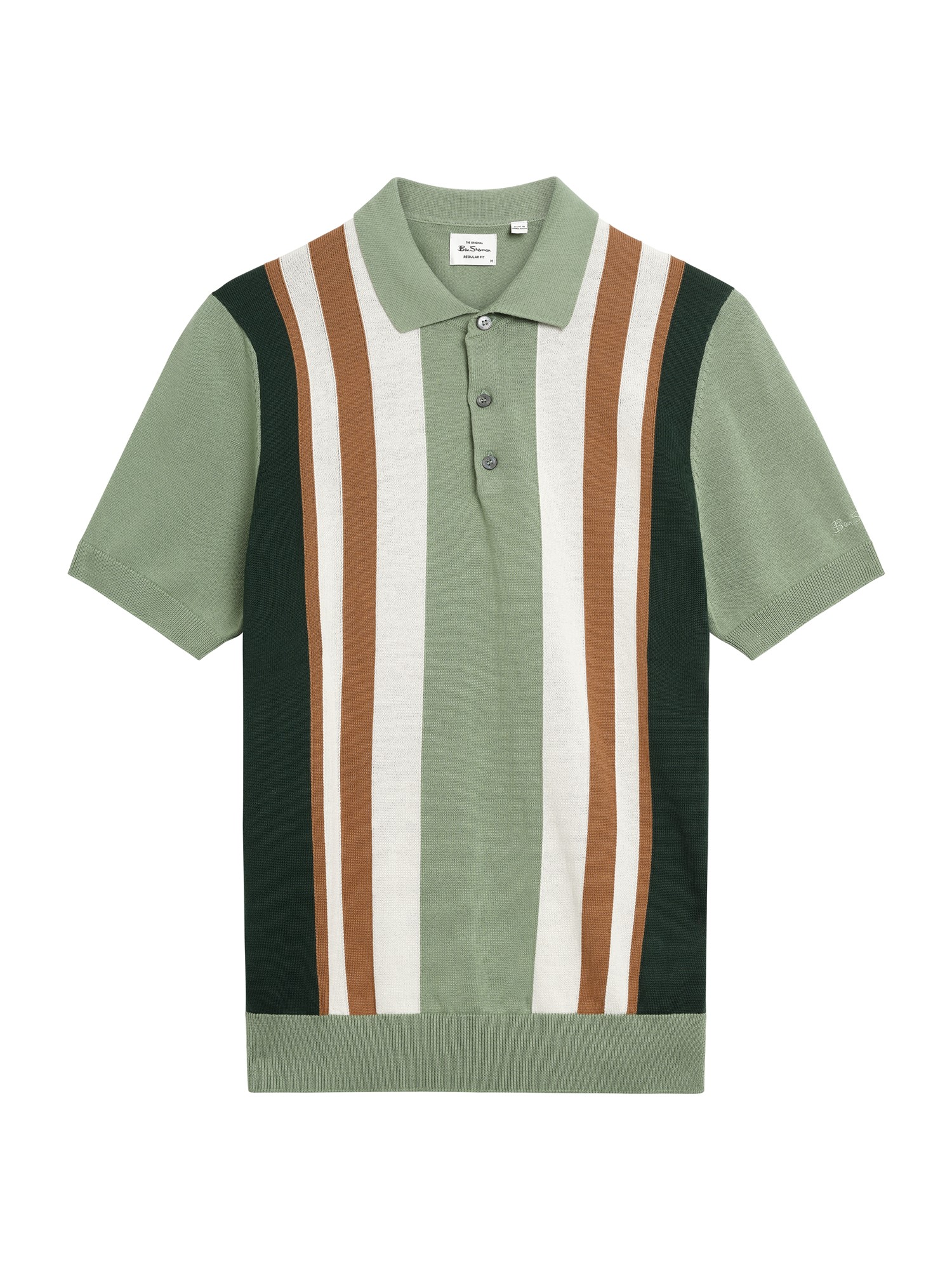 This short sleeve vertical stripe knitted polo features a 3-button placket and a ‘Ben Sherman’ embroidery on the left sleeve. A regular fit, made from 100% cotton.