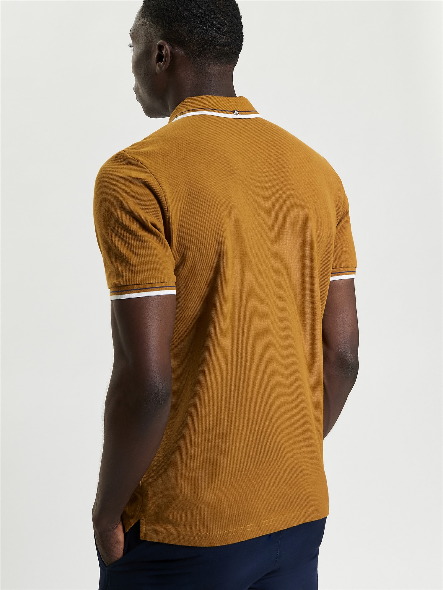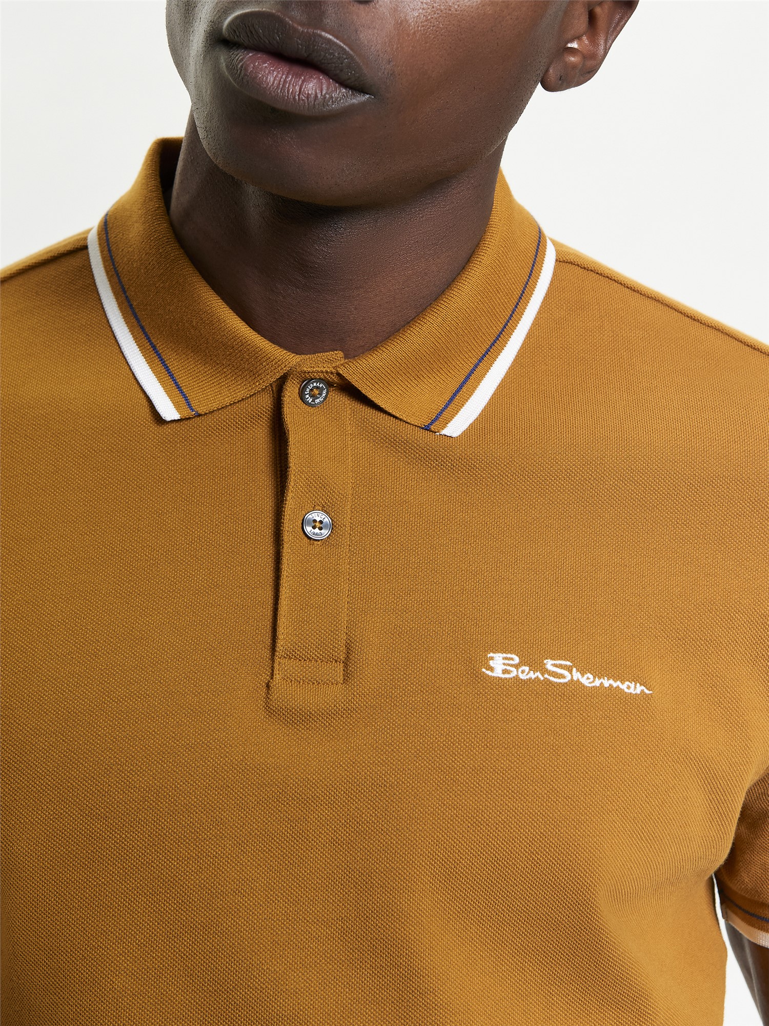 Our signature pique polo features mod tipping, contrast embroidery on the left chest and a two button placket. A regular fit, made from 100% organic cotton.