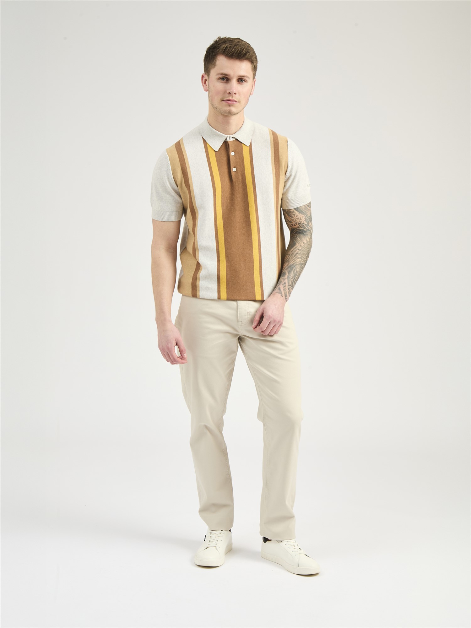This short sleeve vertical stripe knitted polo features a 3-button placket and a Ben Sherman embroidery on the left sleeve. A regular fit, made from 100% cotton.