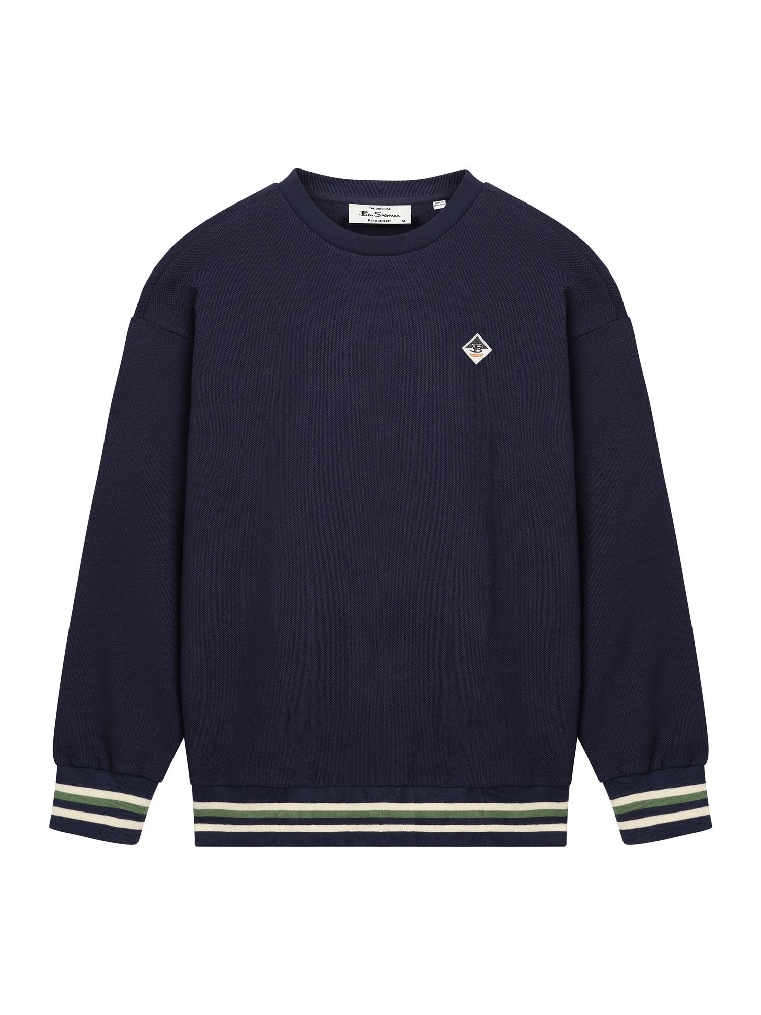 A relaxed fit crew neck sweatshirt in 100% cotton. Designed with a contrast tip ribbed hem and cuff and a B felt badge on the left chest.