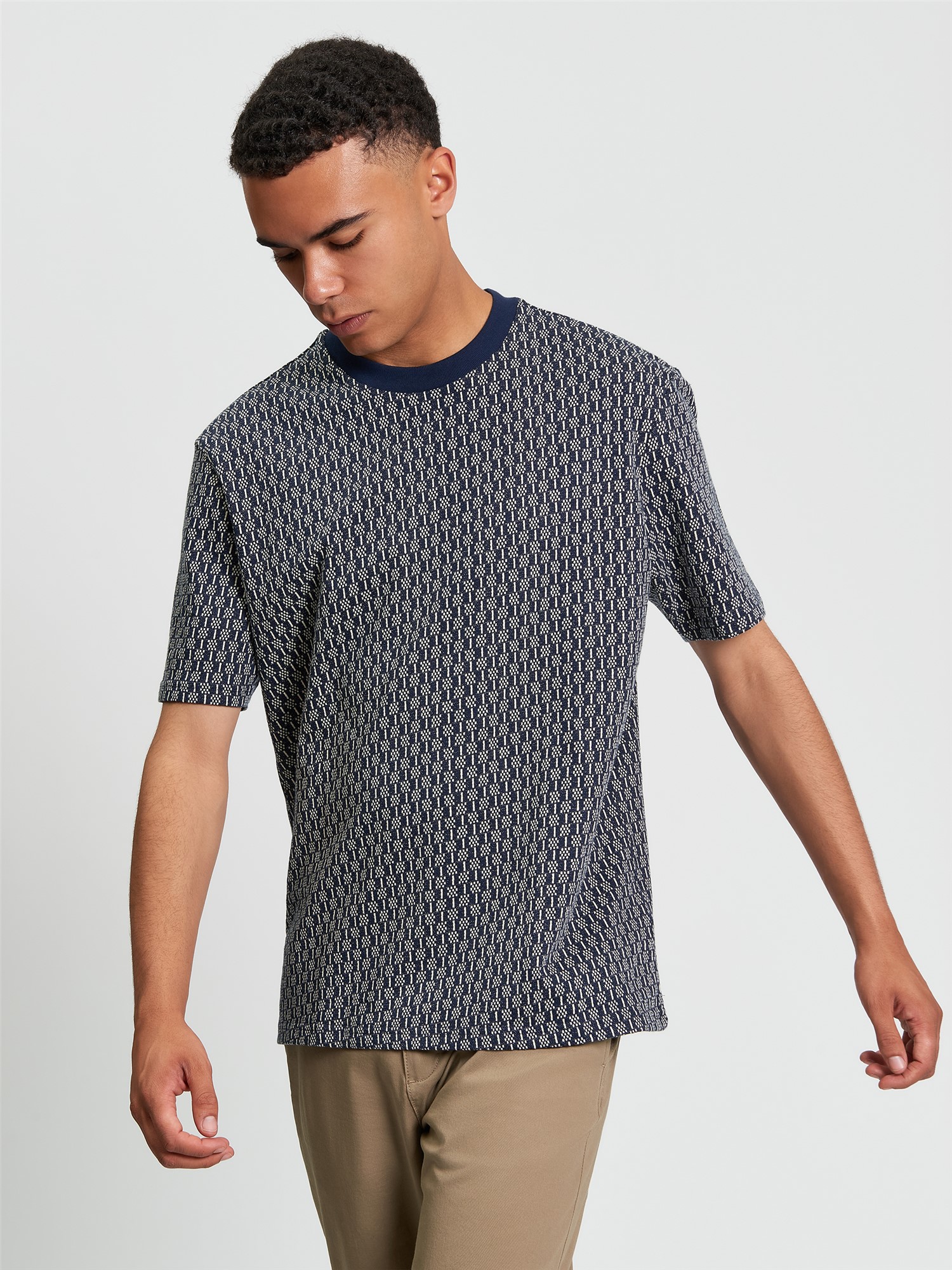 A relaxed short sleeve crew neck tee designed with an all over jacquard pattern and a Ben Sherman branded woven label on the side seam. Made from 100% cotton.