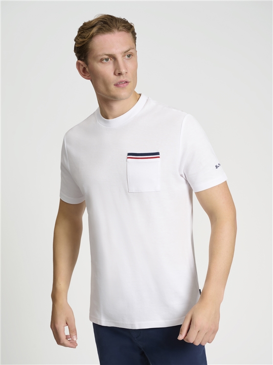 Made from 100% cotton, this short sleeve crew neck tee is designed with a contrast rib patch pocket and back neck trim. A regular fit, completed with a printed logo on sleeve.