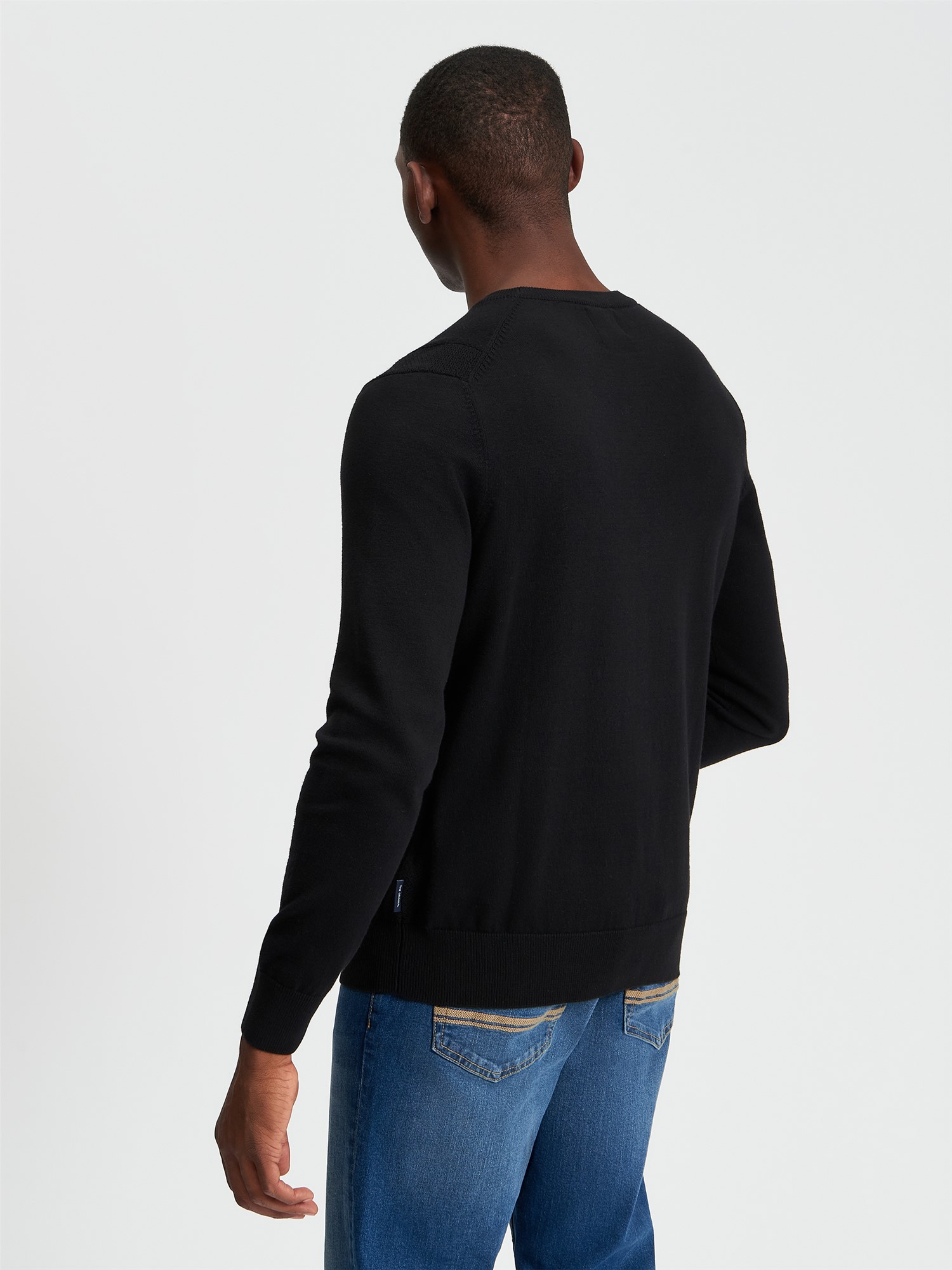 This crew neck fine gauge knit with pique pattern detail at sideseam, Featuring the Ben Sherman flag label at sideseam.