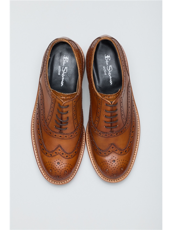 The Sugarman brogue by Ben Sherman. Crafted from burnished tan brush off leather with a soft leather lining and welted outsole. Arthur is a statment shoe, which is perfect with smart denim.