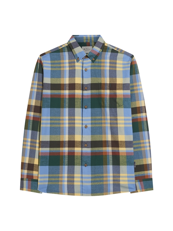 Made from a cotton viscose blend, this long sleeve brushed check shirt includes a two finger button down collar and a Ben Sherman branded woven label at the chest pocket. A classic fit featuring a curved hem.