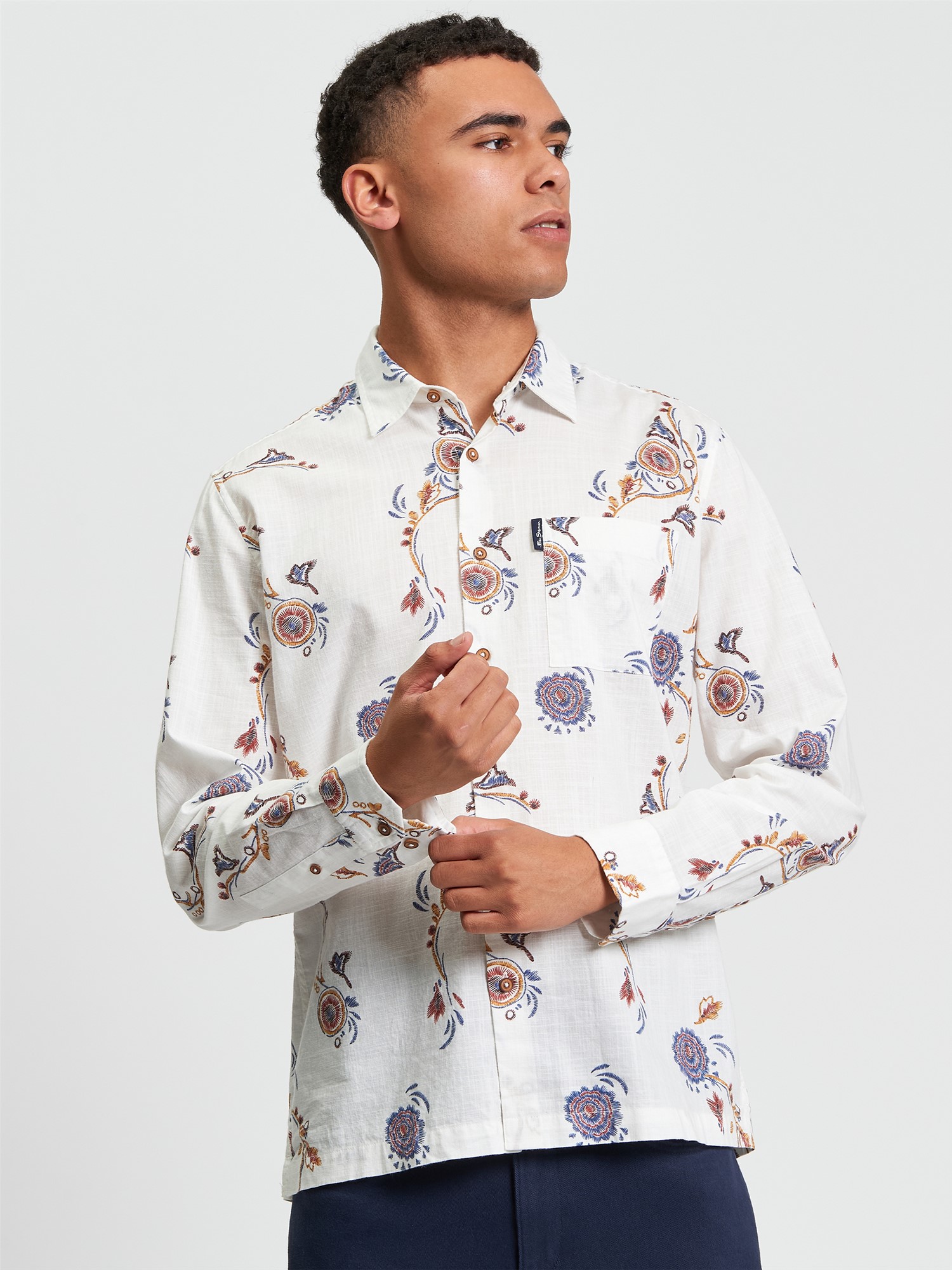 This long sleeve floral craft print shirt features a straight hem and a casual point collar. Made from 100% cotton, this classic fit shirt is completed with a Ben Sherman branded woven label at the chest pocket.