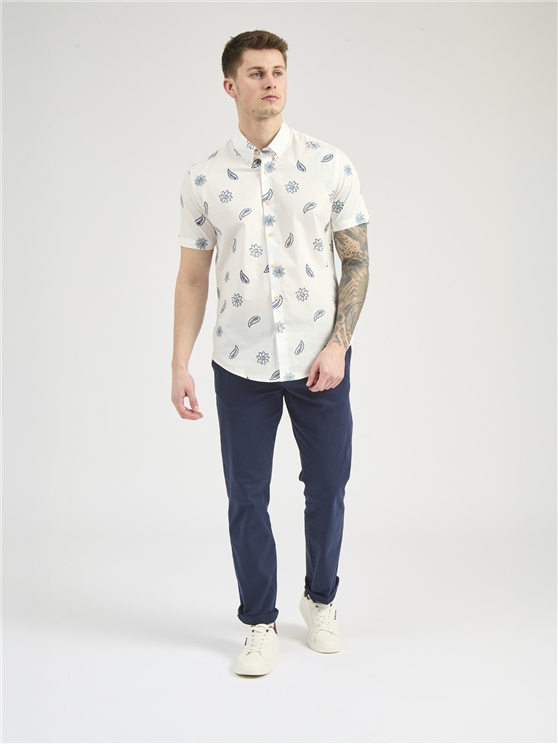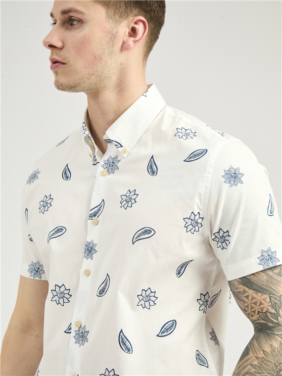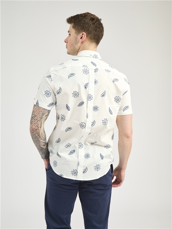 This short sleeve floral print shirt features a curved hem and a two finger button down collar. Made from 100% cotton, this regular fit shirt is completed with a Ben Sherman branded woven tab at the side seam.