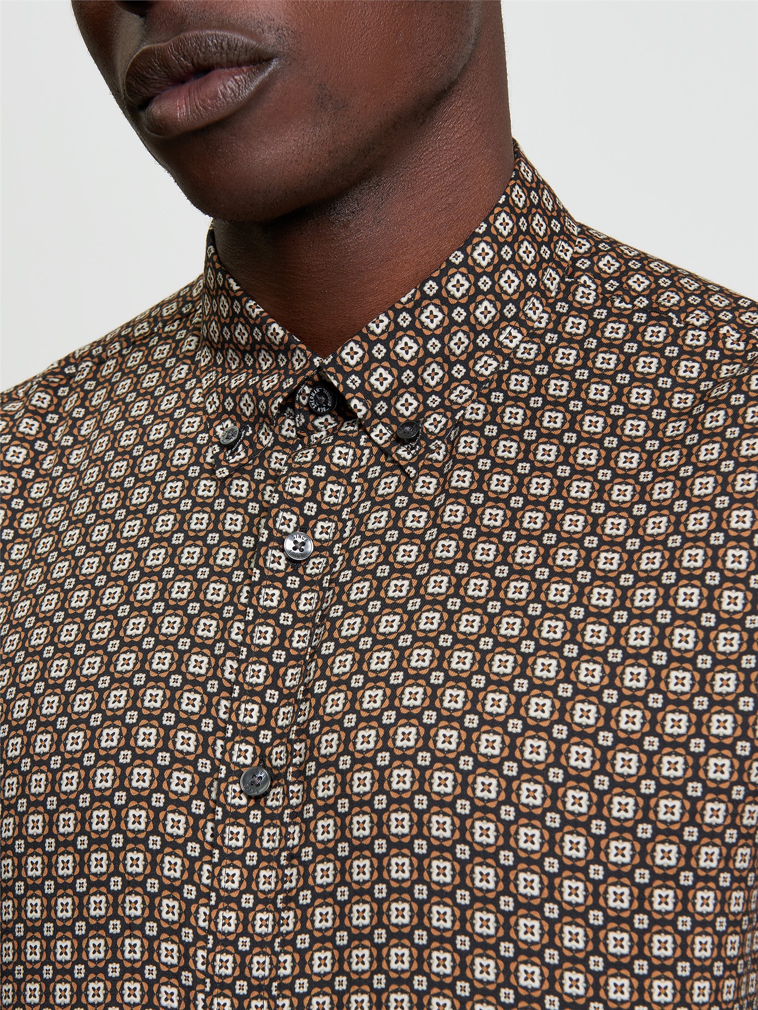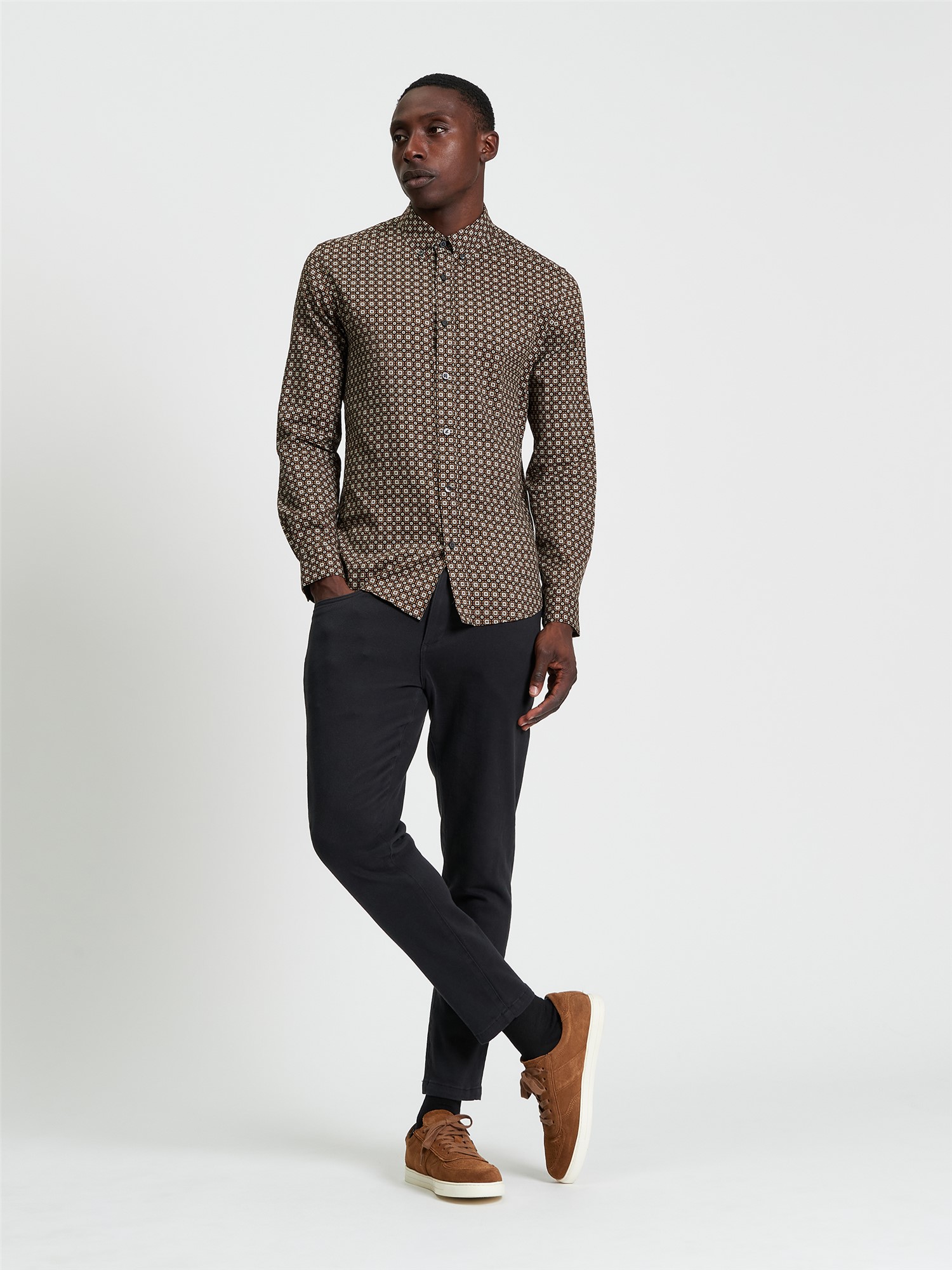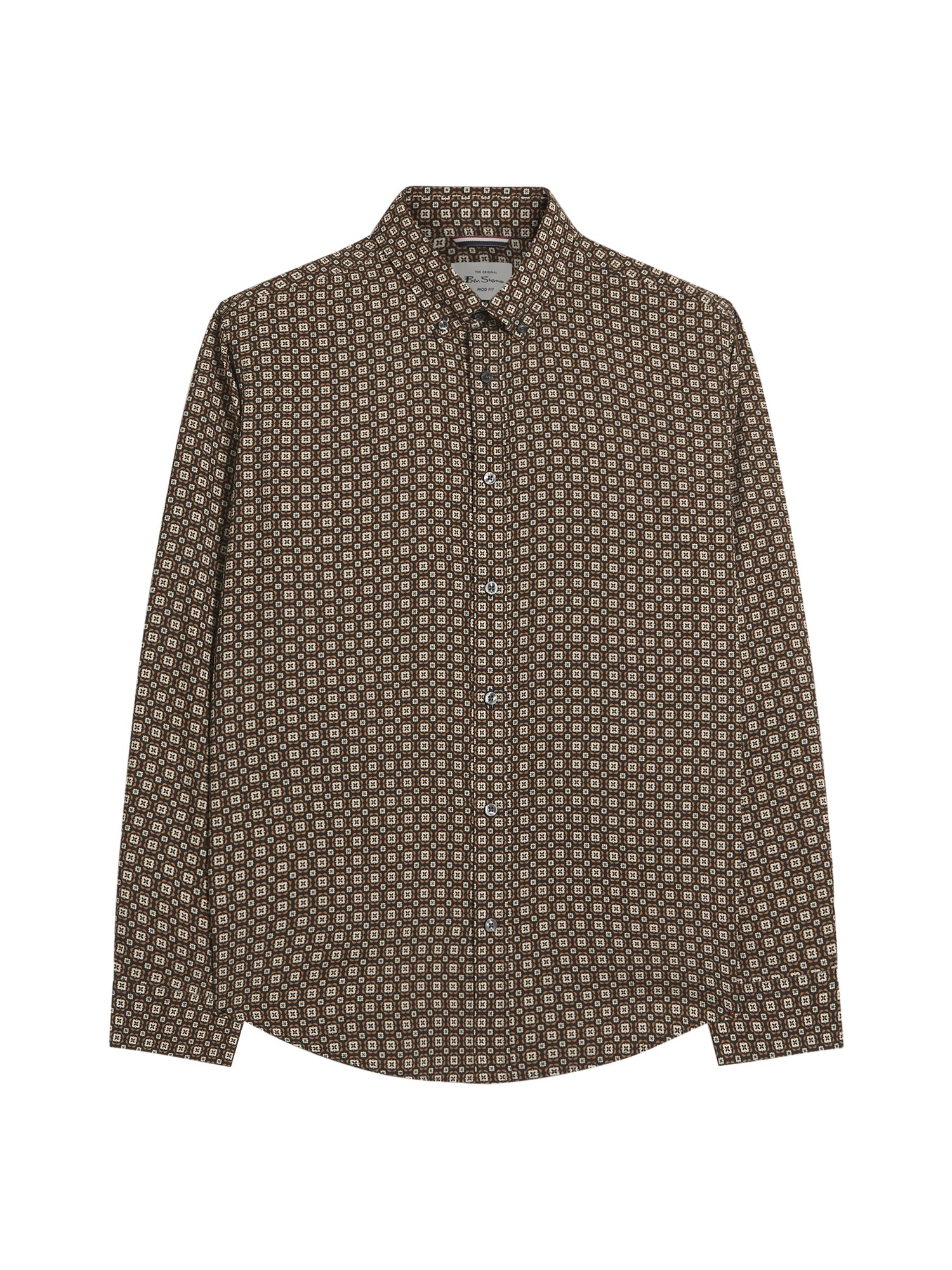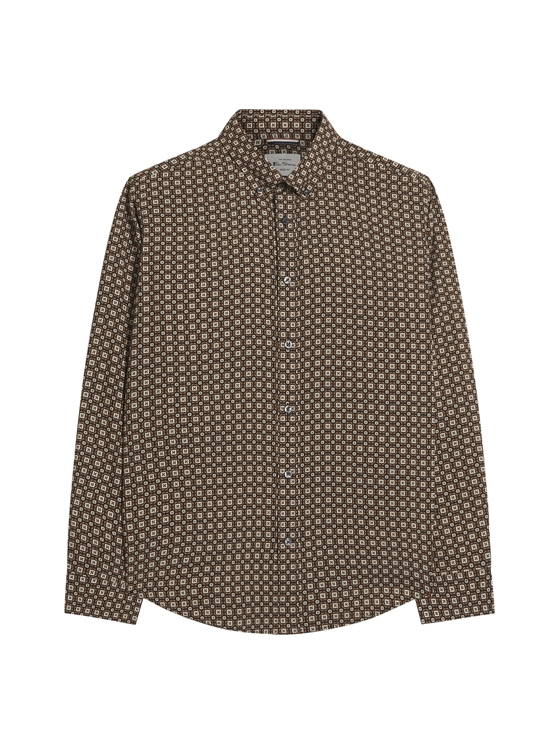 Made from a cotton viscose blend, this long sleeve foulard printed shirt includes a two finger button down collar and a Ben Sherman branded woven label on the side seam. A regular fit featuring a curved hem.