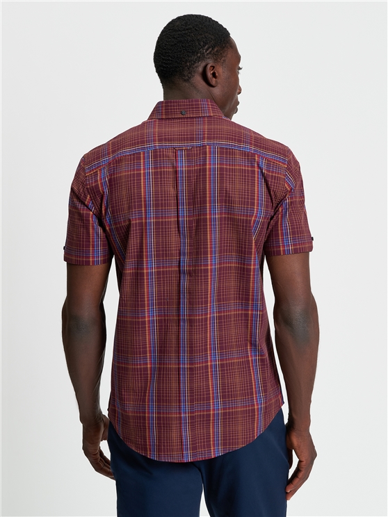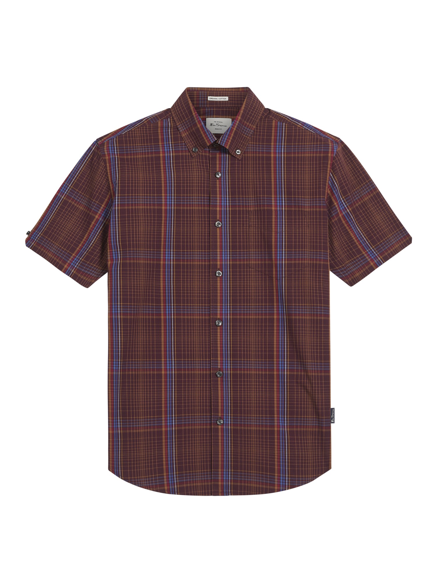 A regular fit shirt designed with a linear check. Featuring a curved hem, three finger button down collar and a Ben Sherman branded woven label at the chest pocket. Made from 100% cotton.