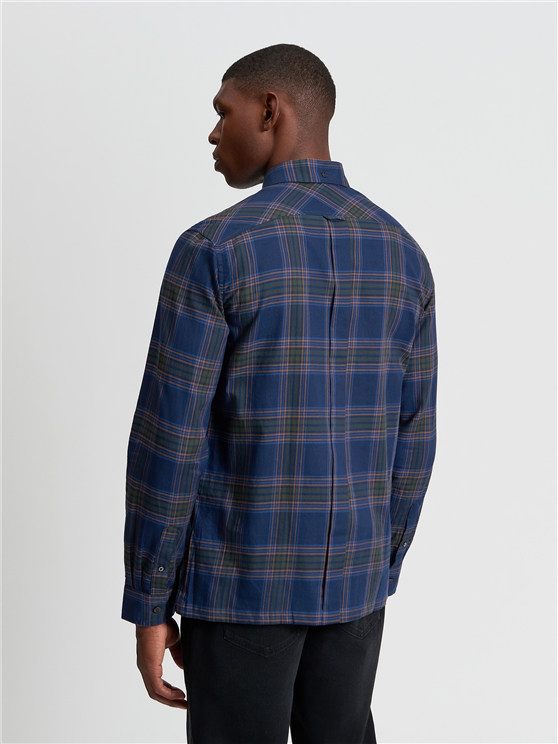 This long sleeve grid check shirt features a curved hem and a three finger button down collar. Made from 100% cotton, this regular fit shirt is completed with a Ben Sherman branded woven label on the side seam.