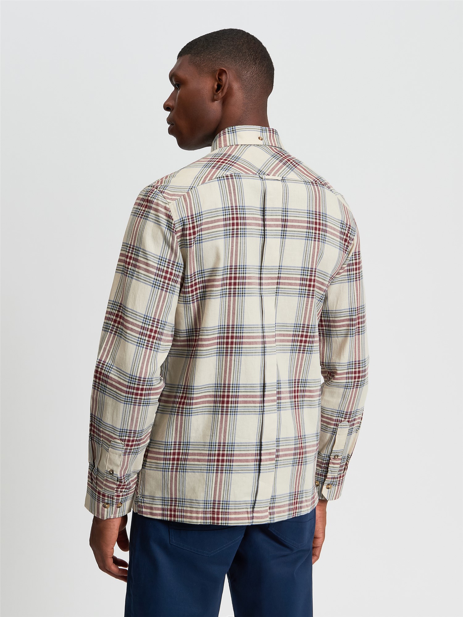 This long sleeve grid check shirt features a curved hem and a three finger button down collar. Made from 100% cotton, this regular fit shirt is completed with a Ben Sherman branded woven label on the side seam.