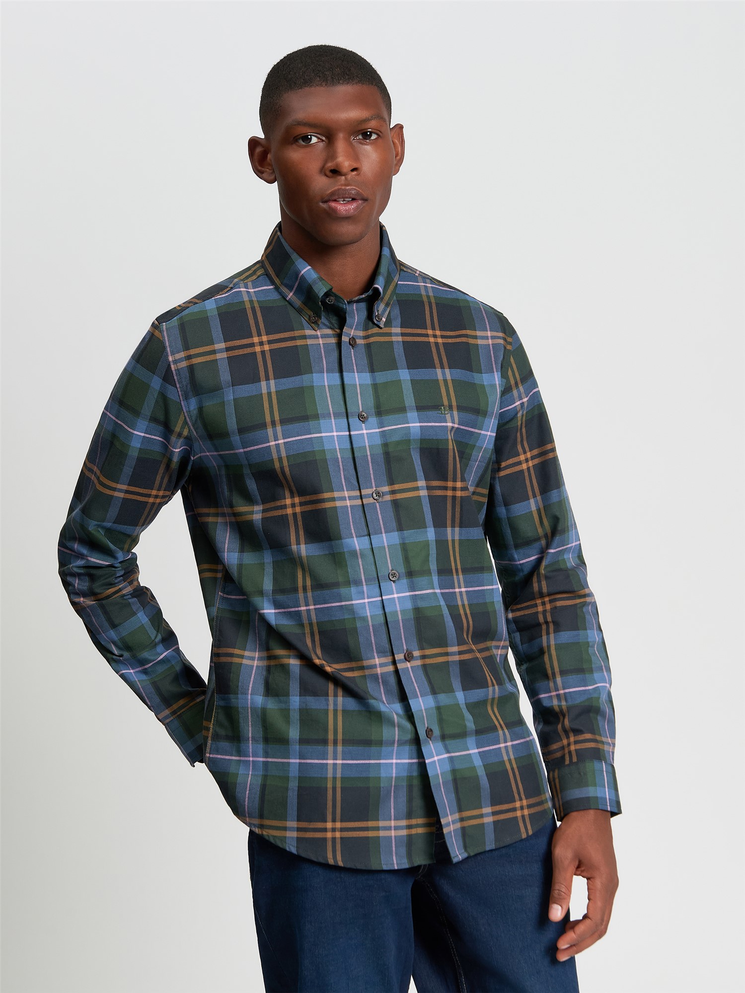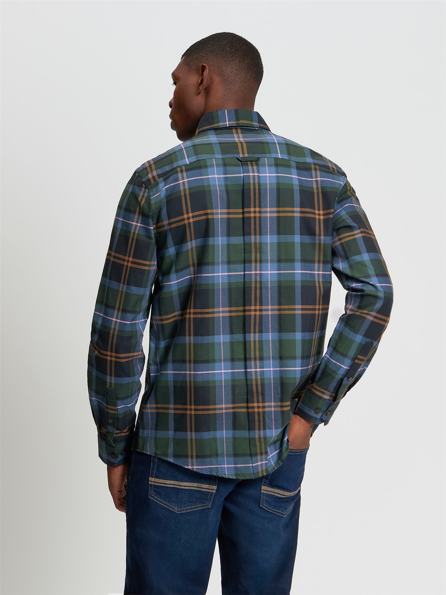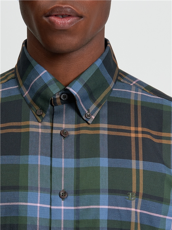 This long sleeve oversized check shirt features a curved hem and a three finger button down collar. Made from 100% cotton, this regular fit shirt is completed with a Ben Sherman branded woven label on the side seam.