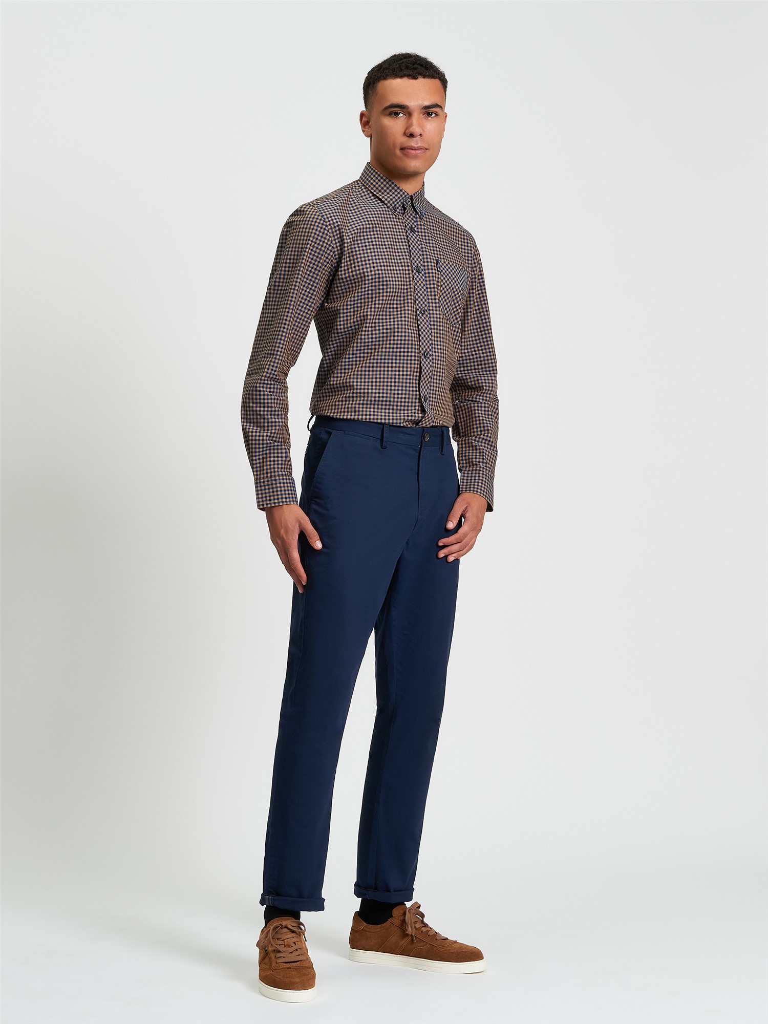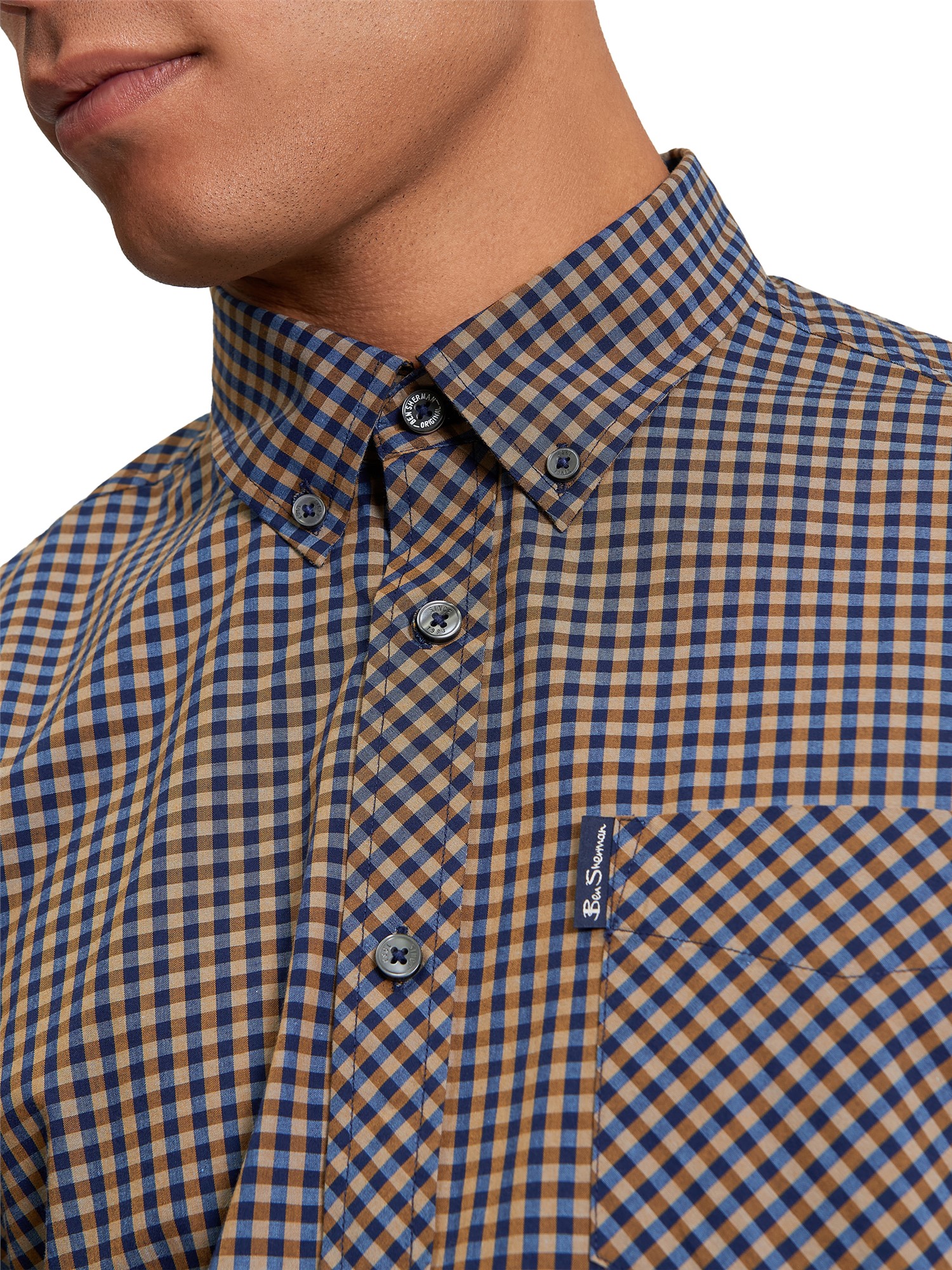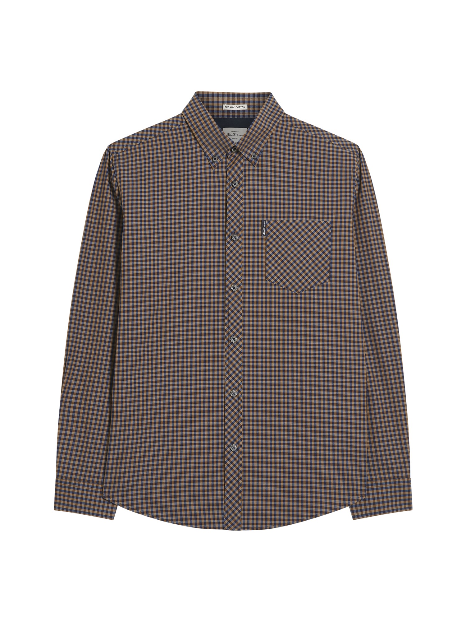 Our signature long sleeve gingham shirt features a two finger button down collar and a Ben Sherman branded woven label at the chest pocket. This regular fit style is finished with a back box pleat for comfort. Made from 100% organic cotton