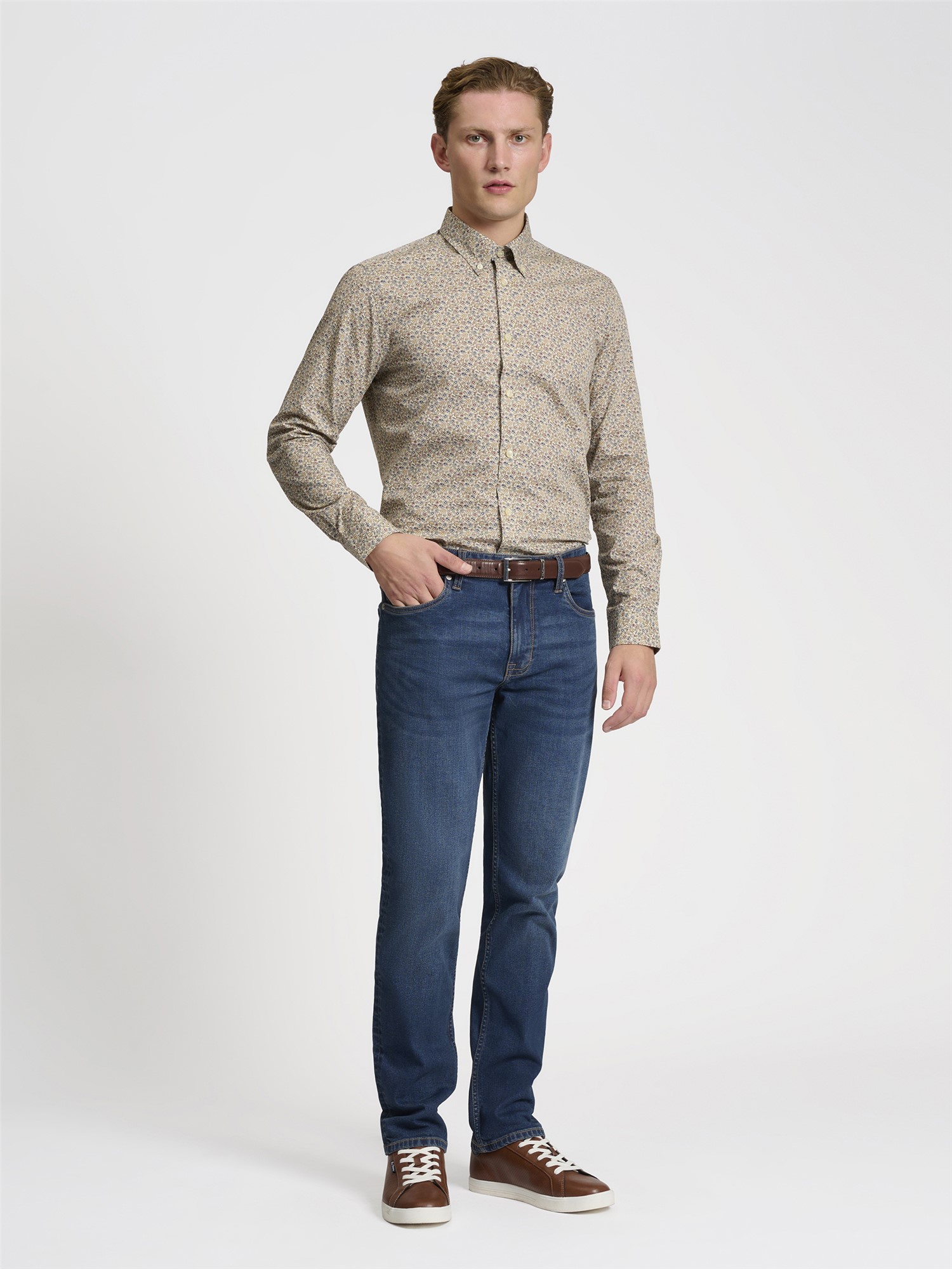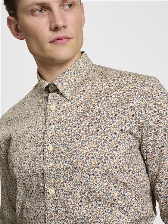 A regular fit shirt designed with a winter floral print. Featuring a curved hem, two finger button down collar and a ‘Ben Sherman’ branded woven label at the side seam. Made from 100% cotton.