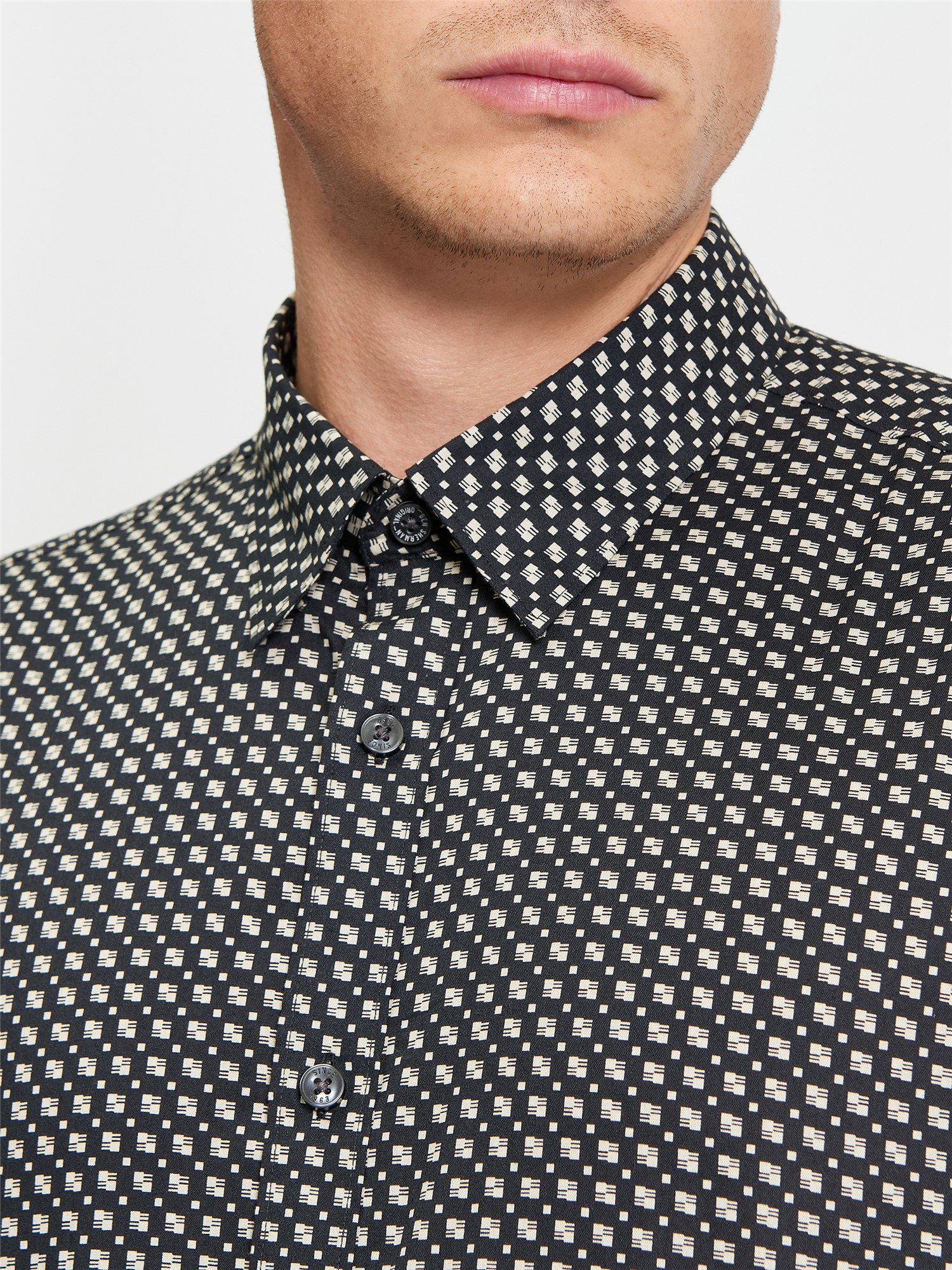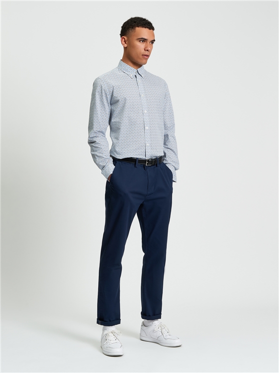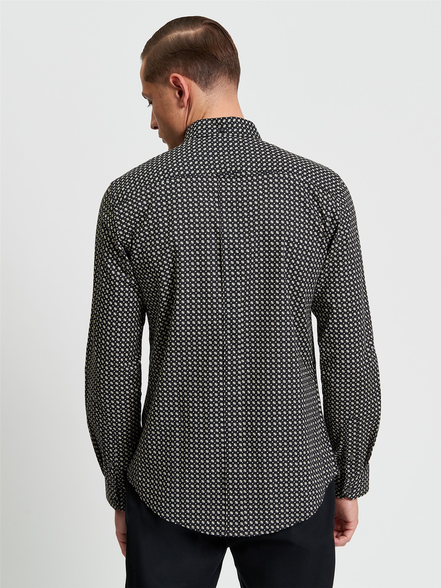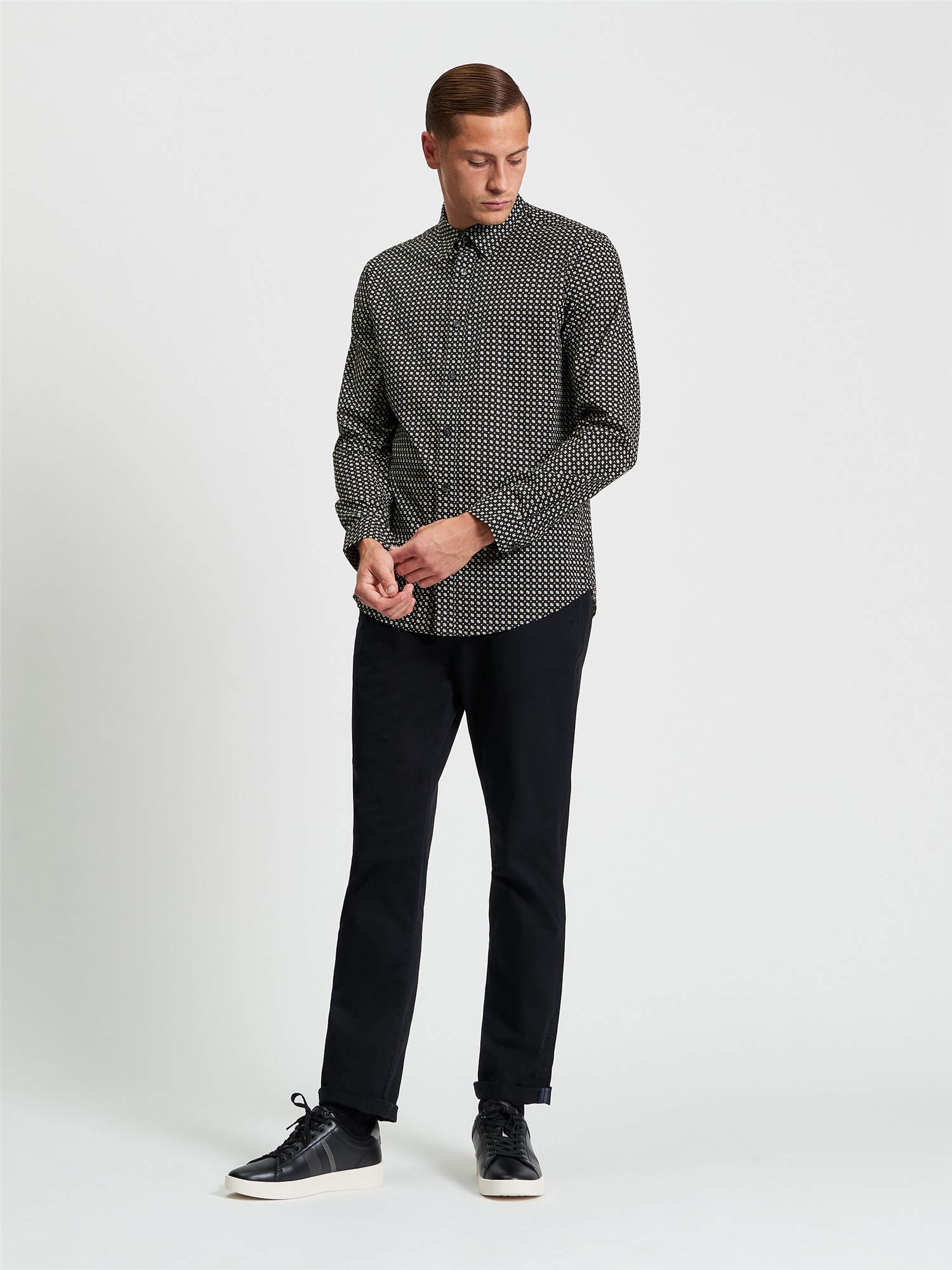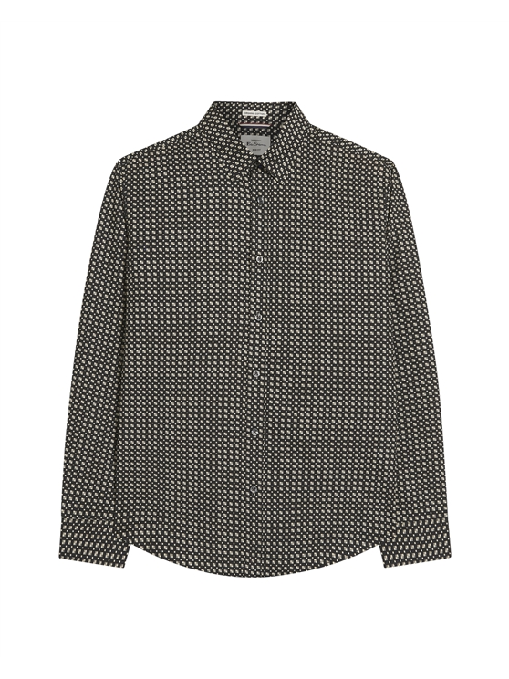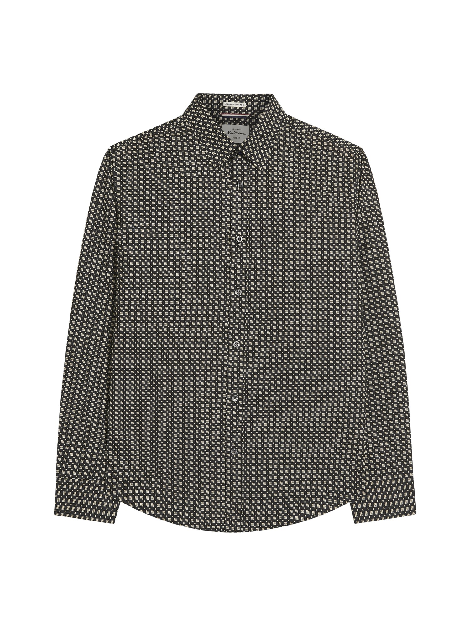 A regular fit shirt design with a mono block print. Featuring a curved hem, classic point concealed button down collar and a Ben Sherman branded woven label on the side seam.