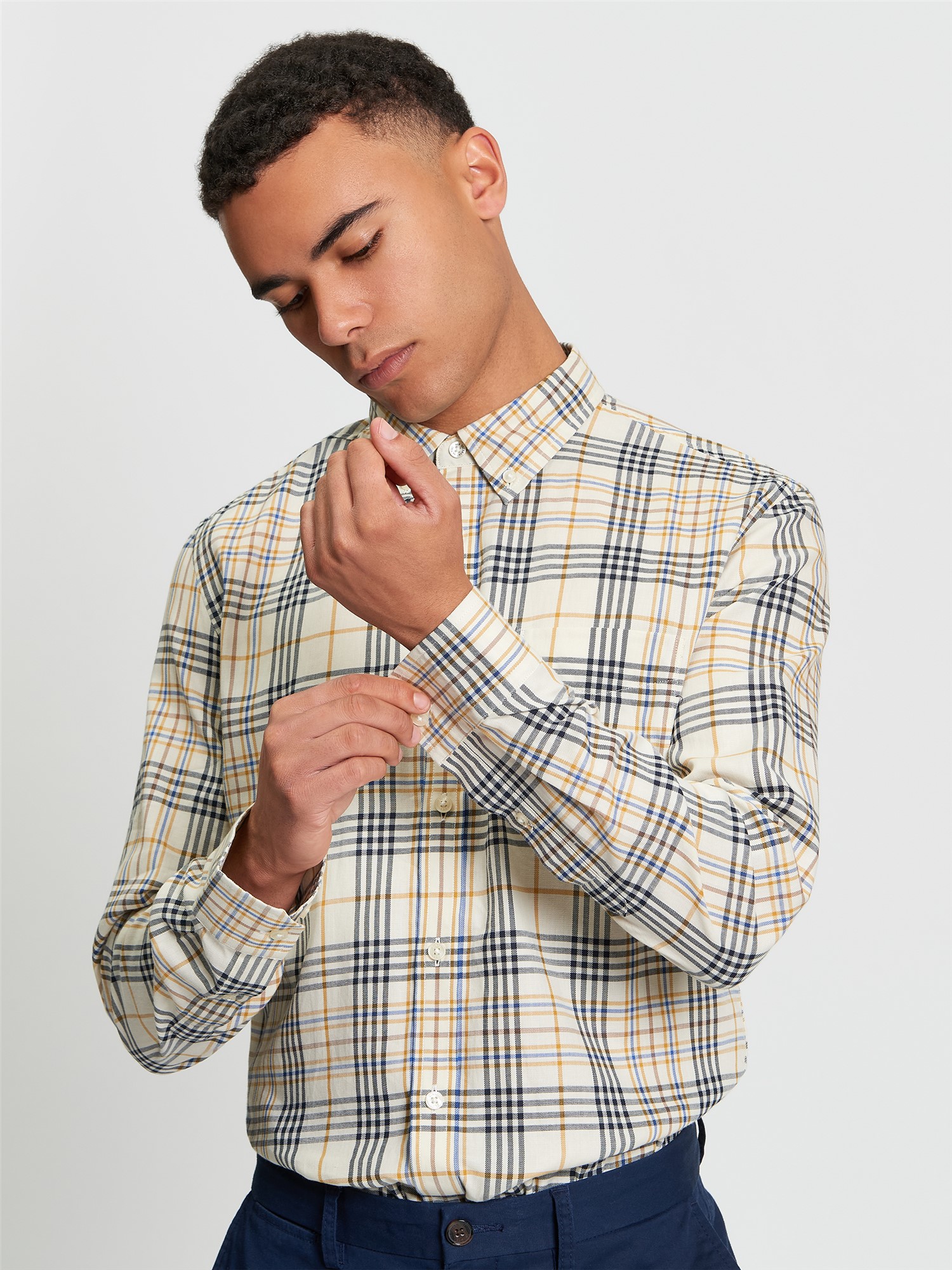 Made from 100% cotton, this long sleeve multi check shirt includes a two finger button down collar and a Ben Sherman branded woven label at the chest pocket. A regular fit featuring a curved hem.