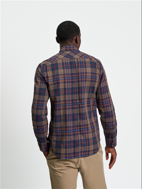 Made from 100% cotton, this long sleeve multi check shirt includes a two finger button down collar and a Ben Sherman branded woven label at the chest pocket. A regular fit featuring a curved hem.