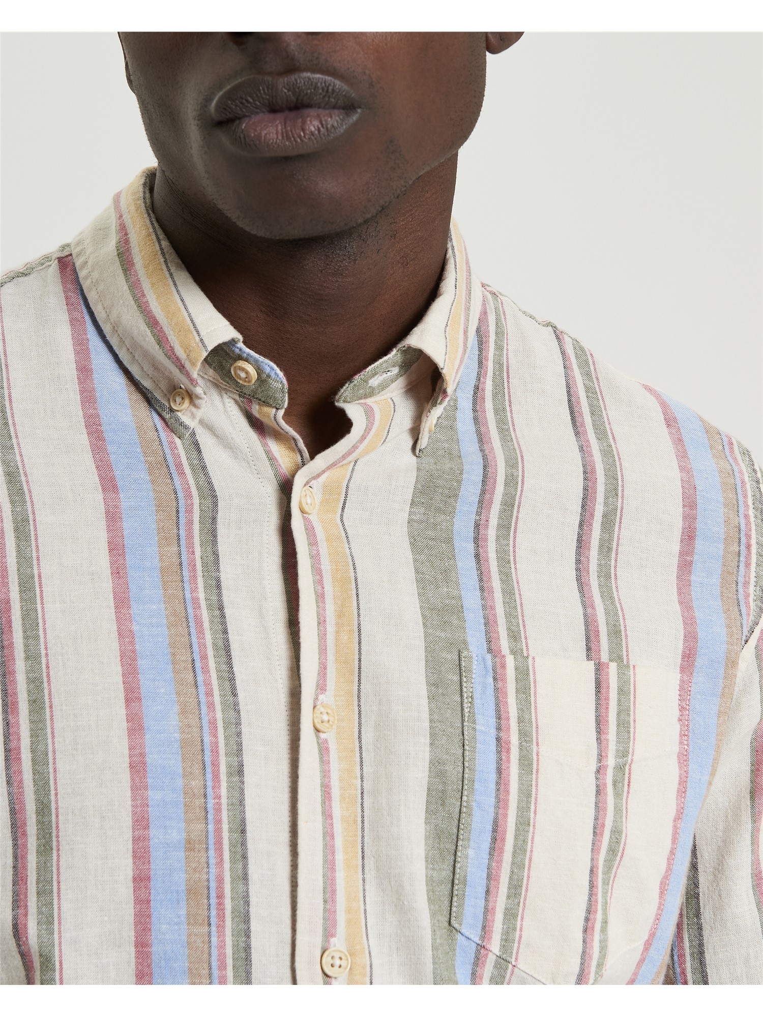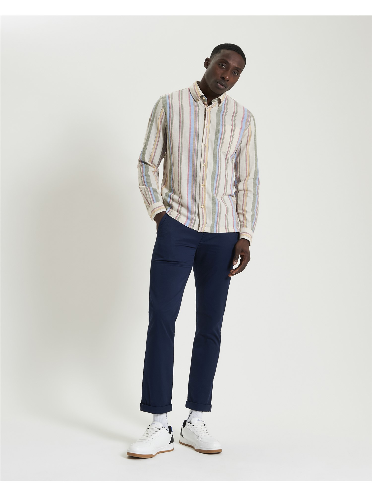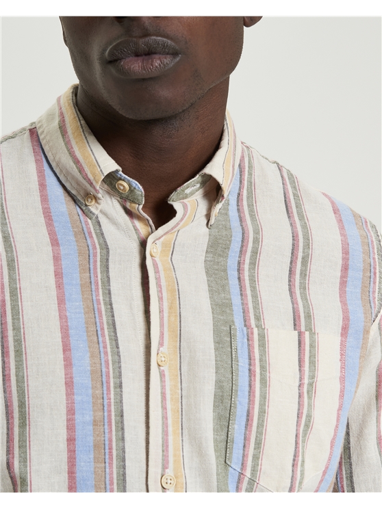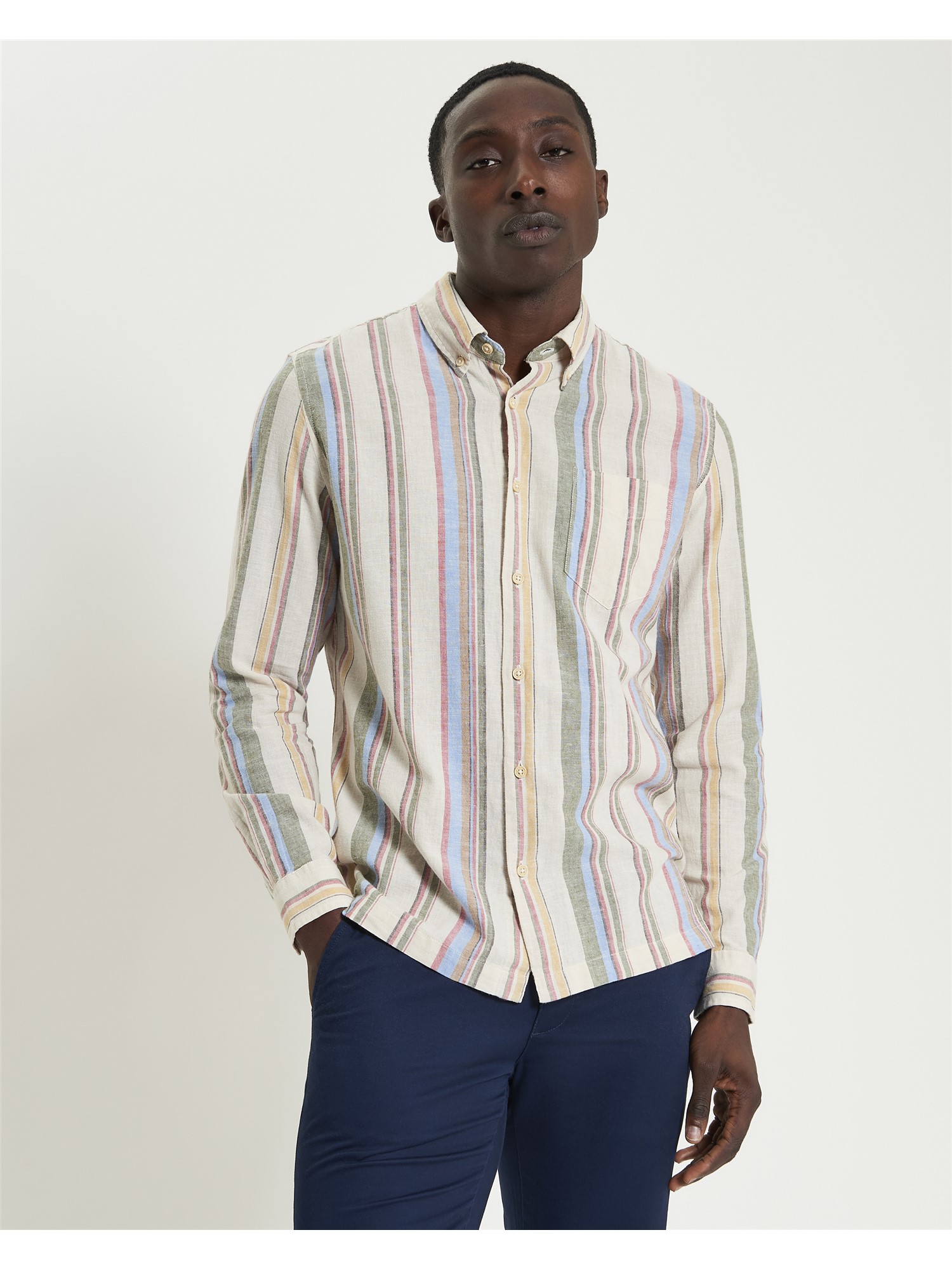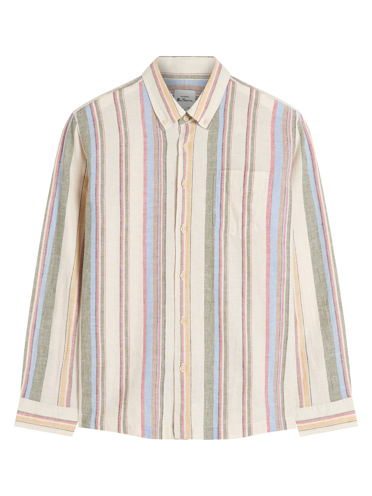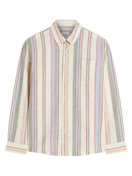Made from a cotton linen blend, this long sleeve multicoloured stripe shirt includes a three finger button down collar and a 'Ben Sherman' branded woven label at the side seam. A classic fit featuring a straight hem.