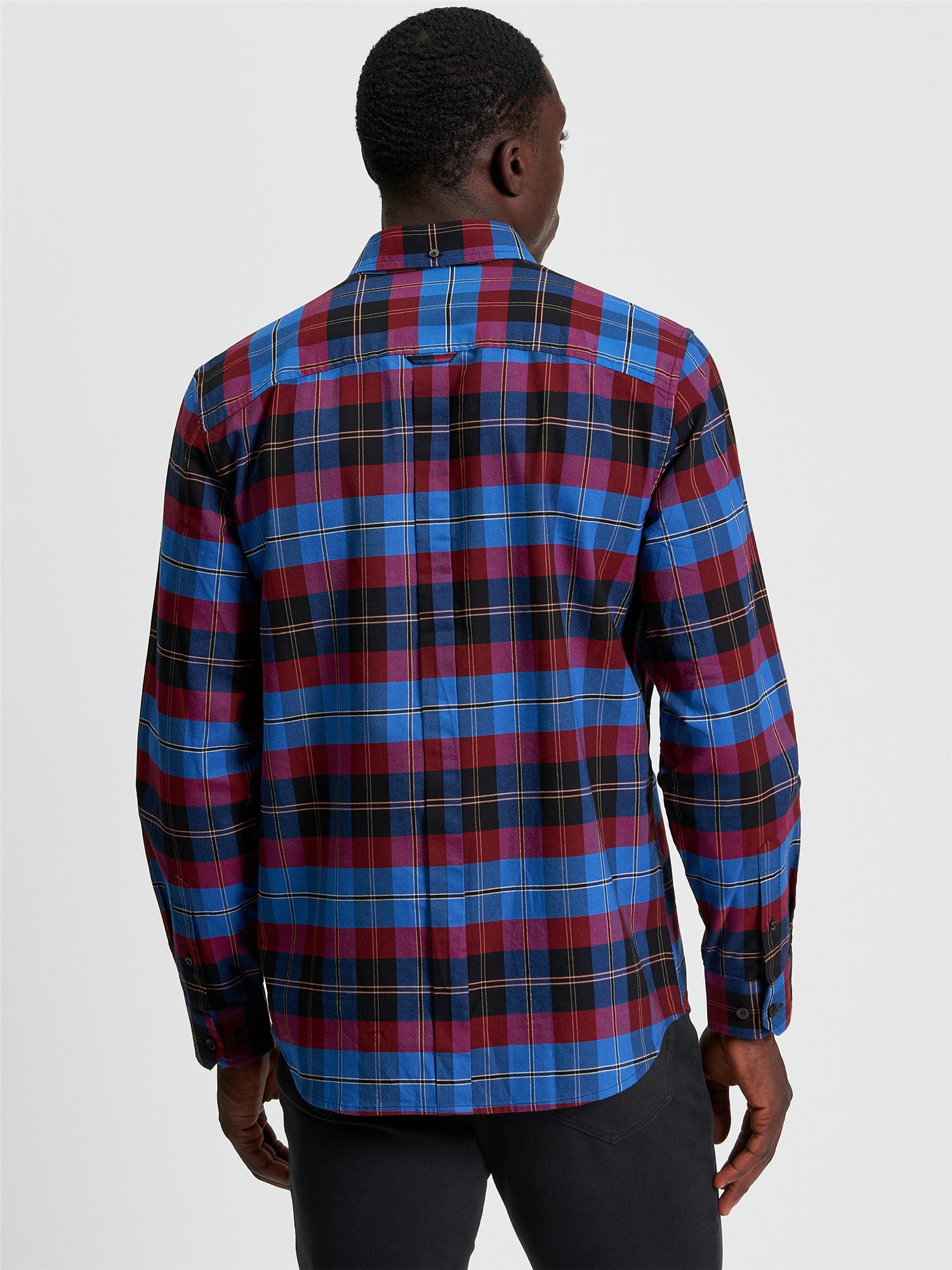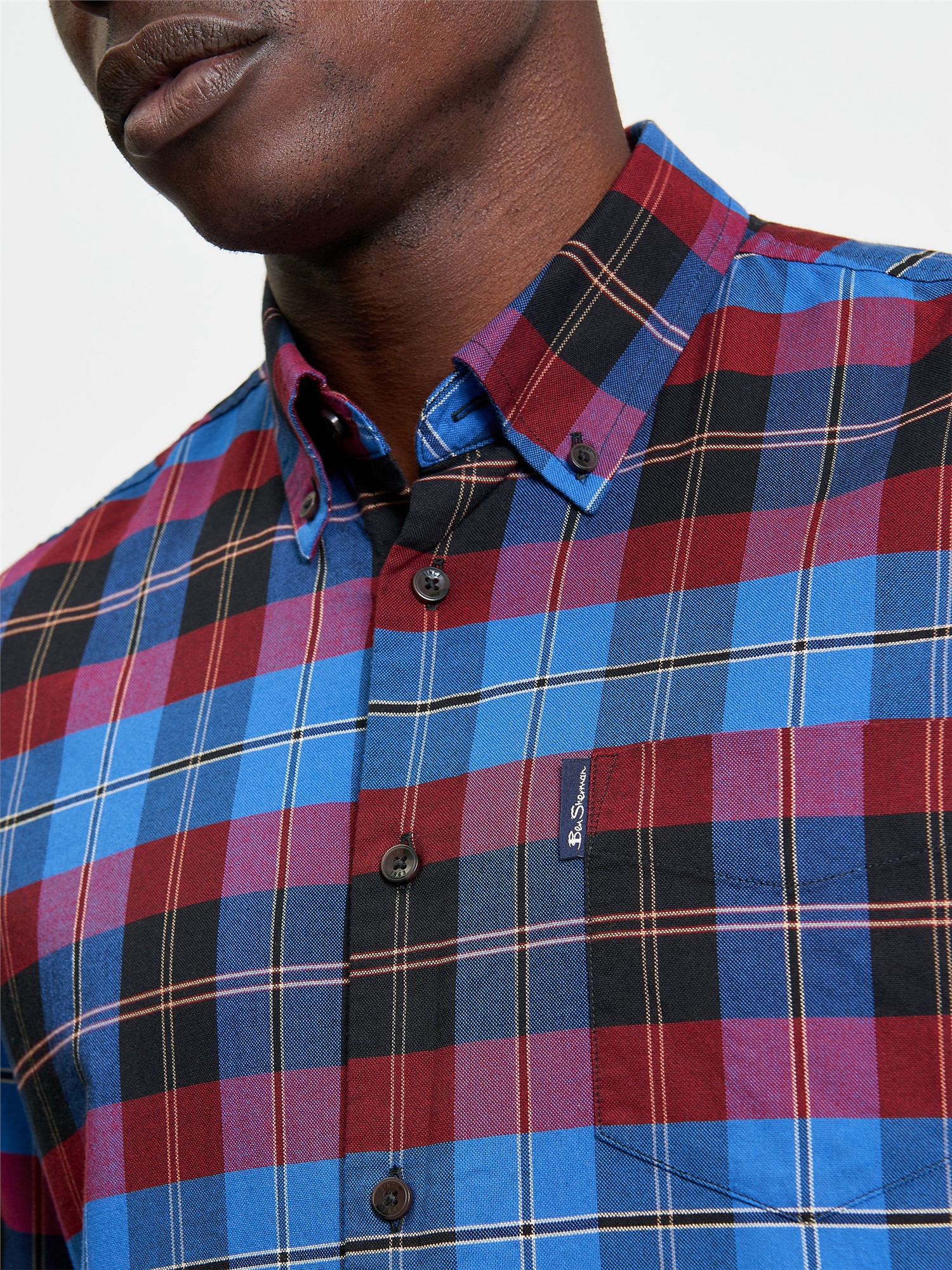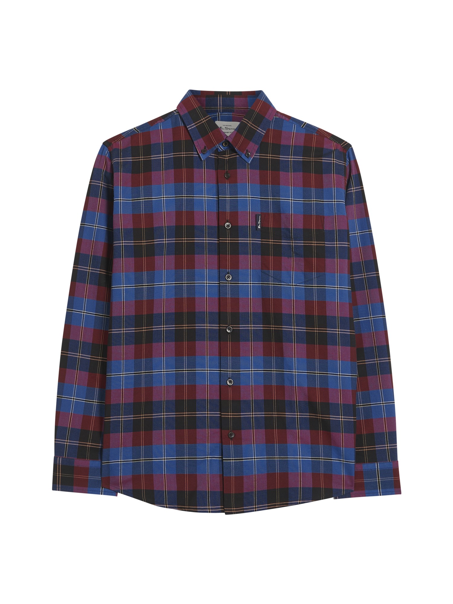 This long sleeve oxford check shirt features a curved hem and a three finger button down collar. Made from 100% cotton, this classic fit shirt is completed with a Ben Sherman branded woven label at the chest pocket.
